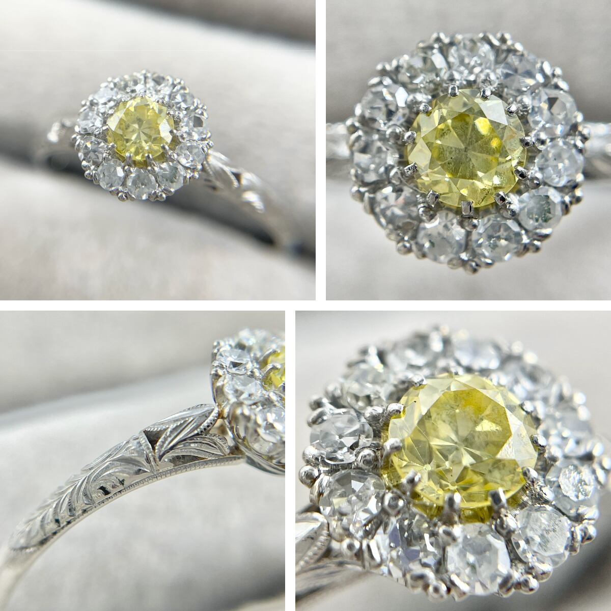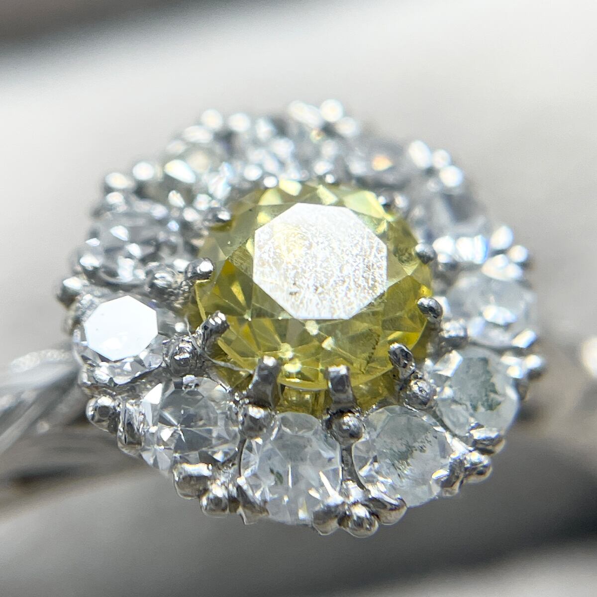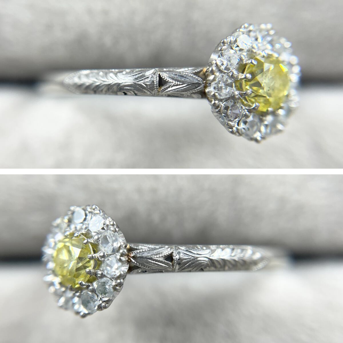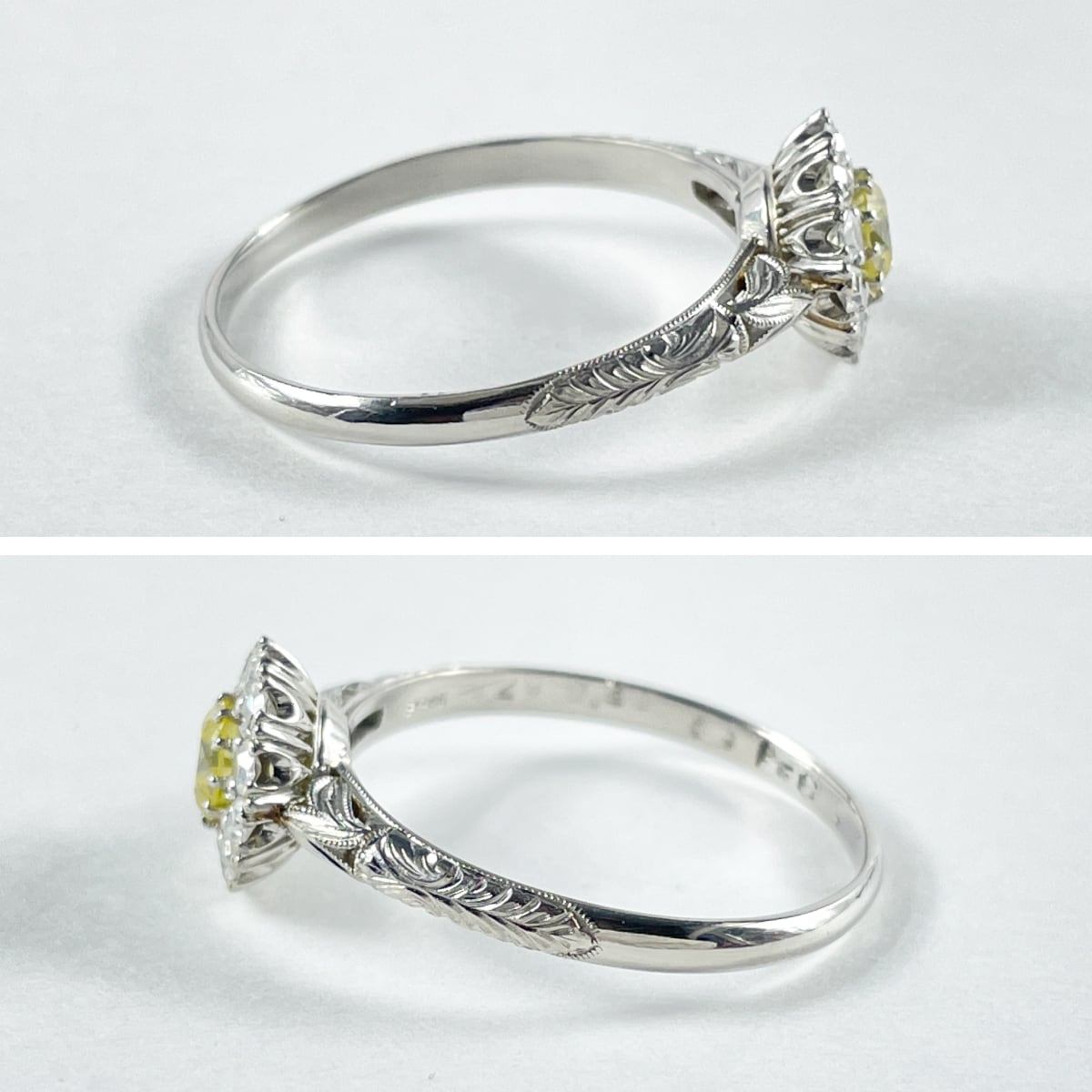 指先に太陽の光を纏うような、鮮やかなイエローダイヤモンドのリング。