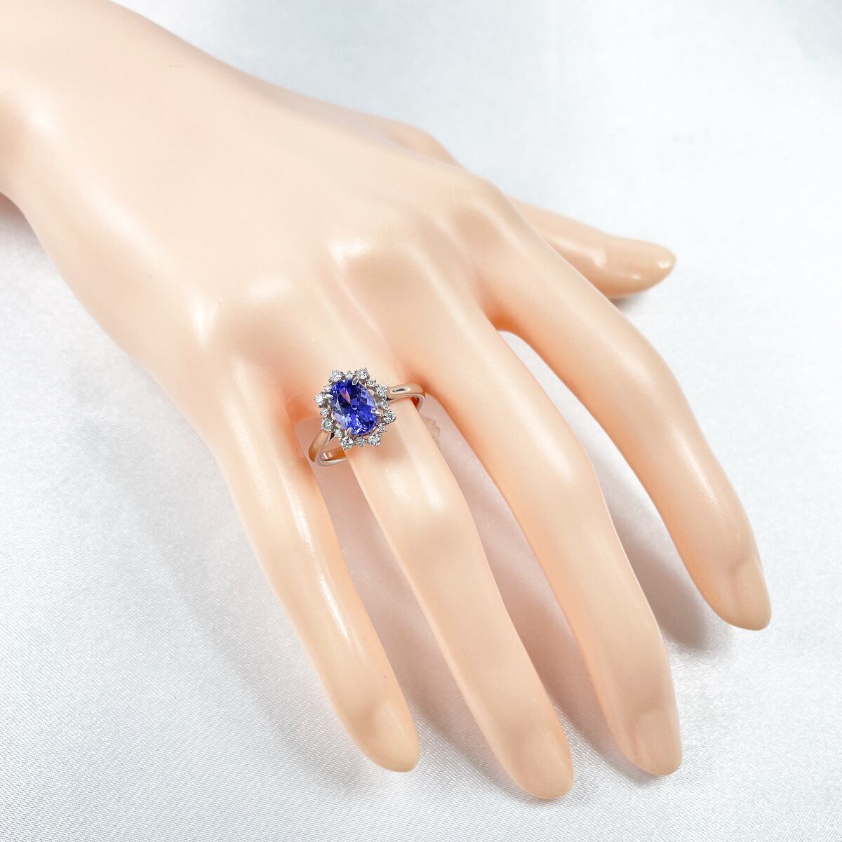 大粒のタンザナイトとダイヤの取り巻きが、まるでお守りのような存在感。