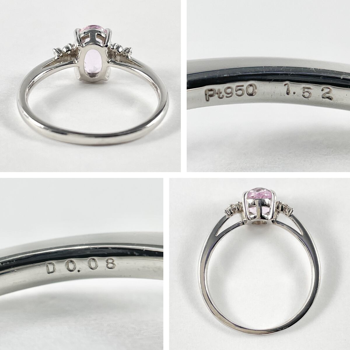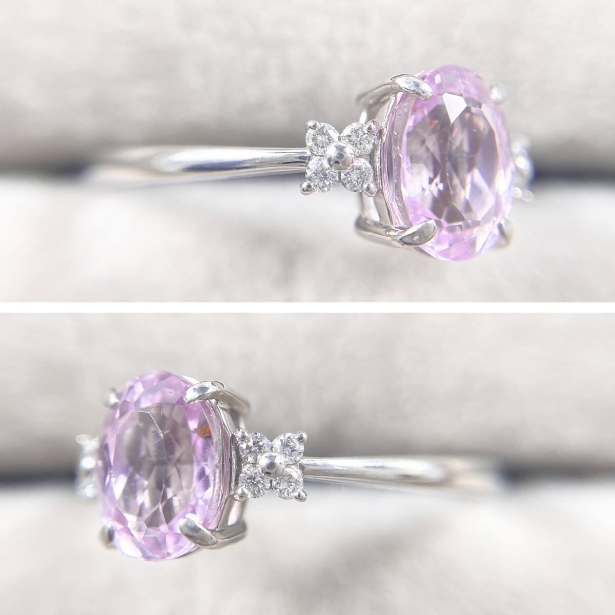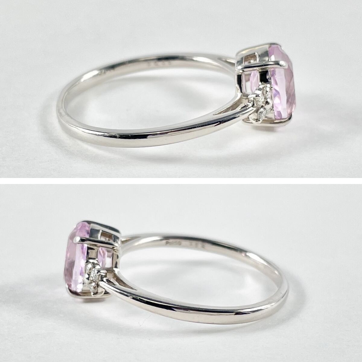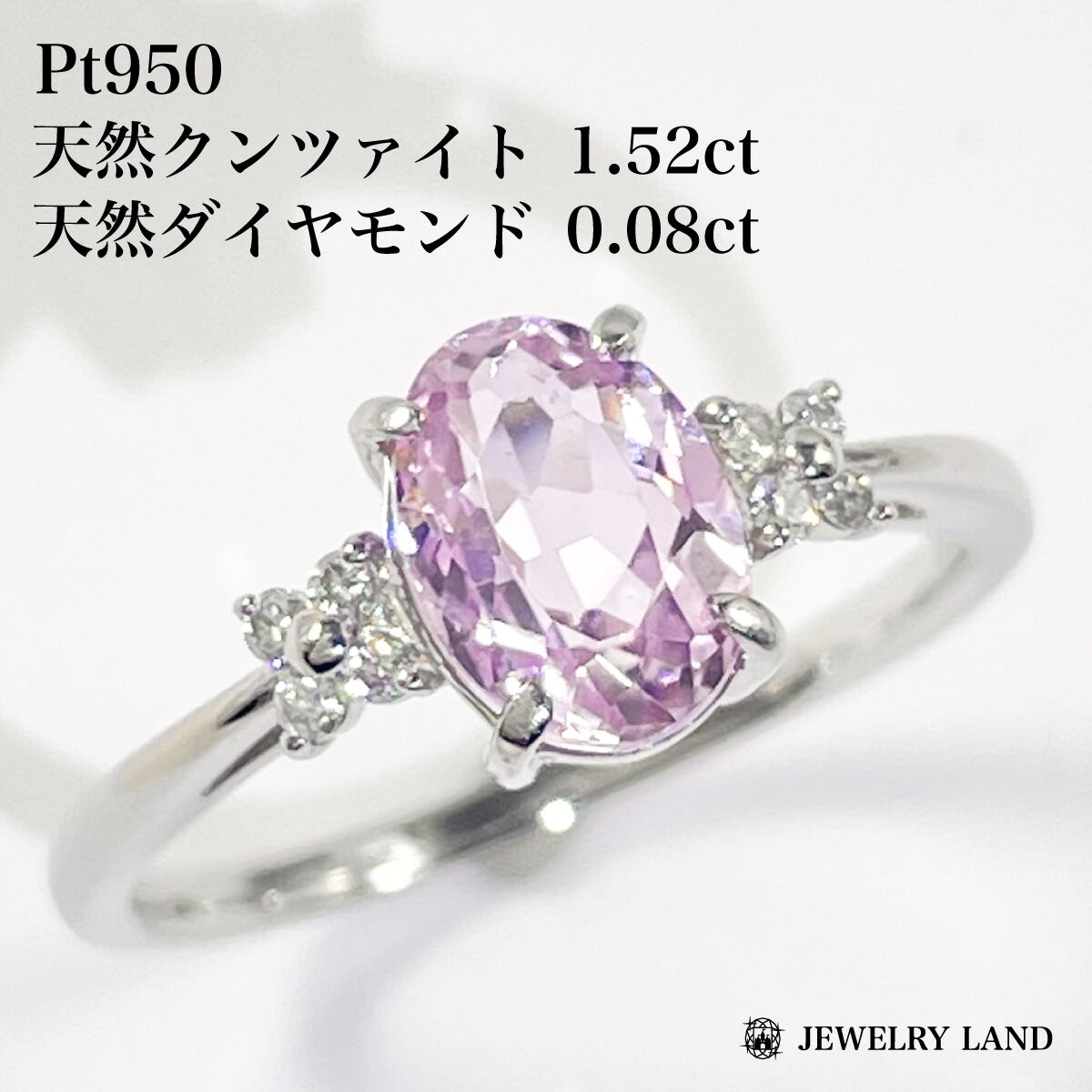Pt950 天然クンツァイト 1.52ct 天然ダイヤ 0.08ct リング