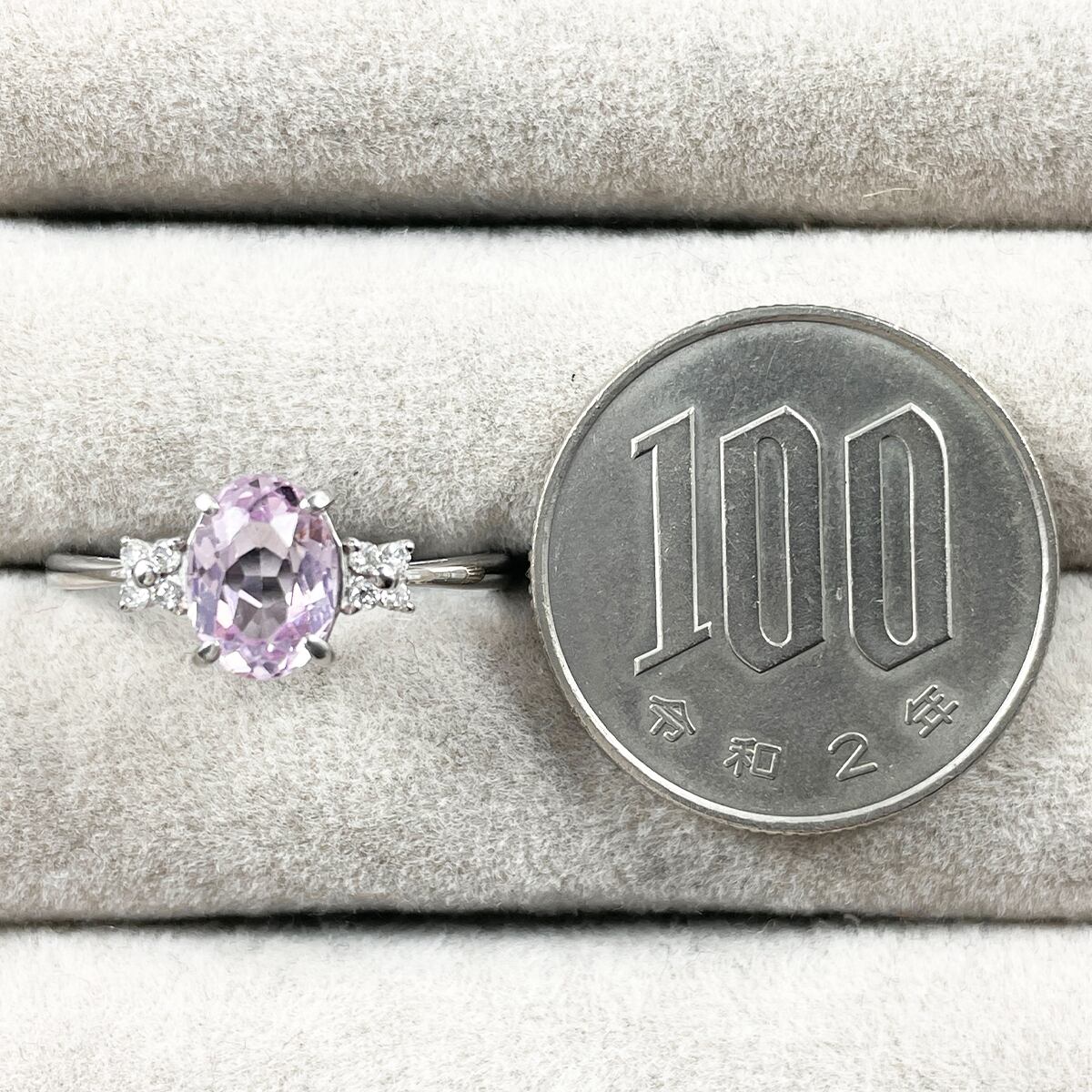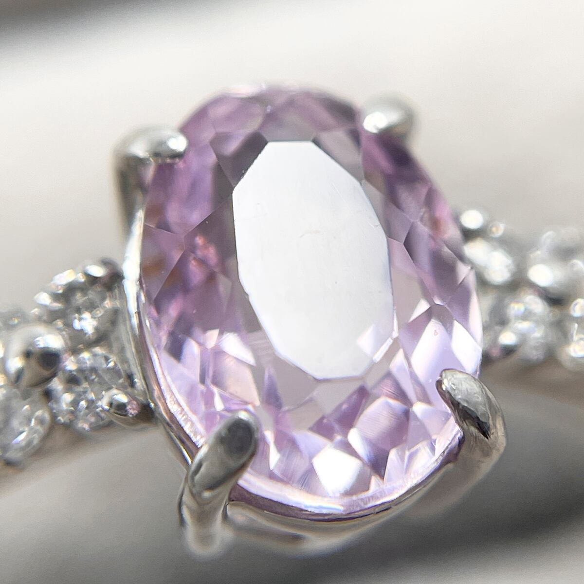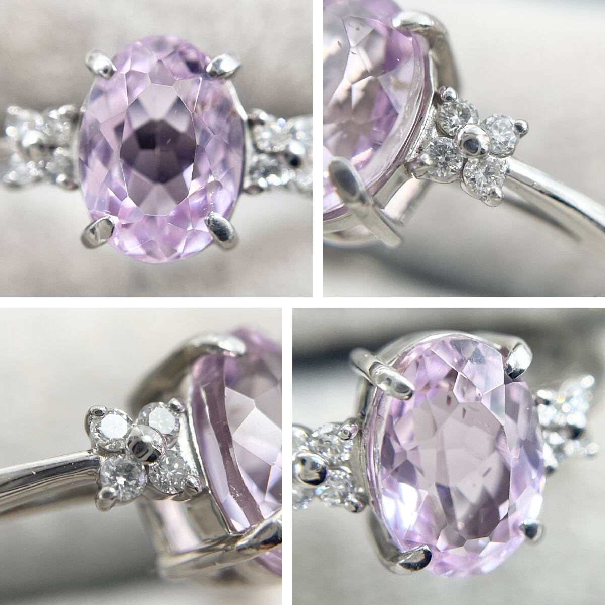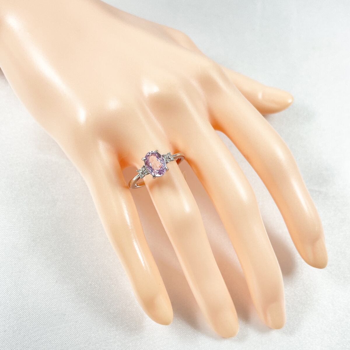 Pt950 天然クンツァイト 1.52ct 天然ダイヤ 0.08ct リング