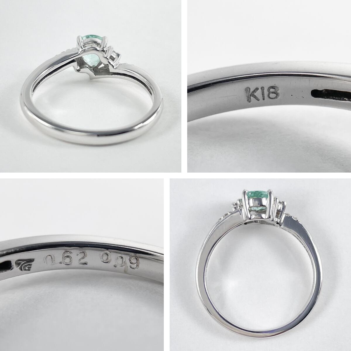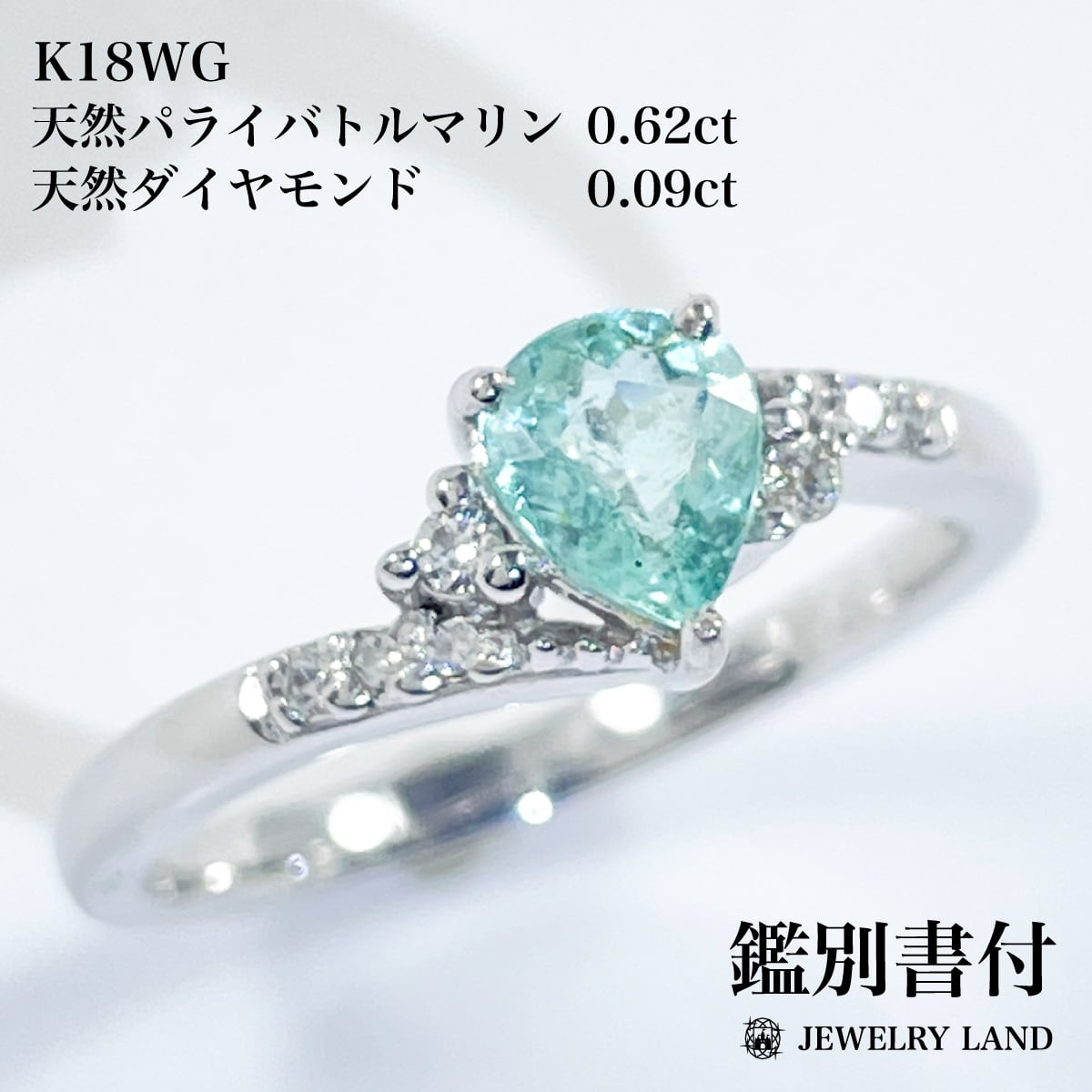 K18WG 天然パライバトルマリン 0.62ct 天然ダイヤモンド 0.09ct
