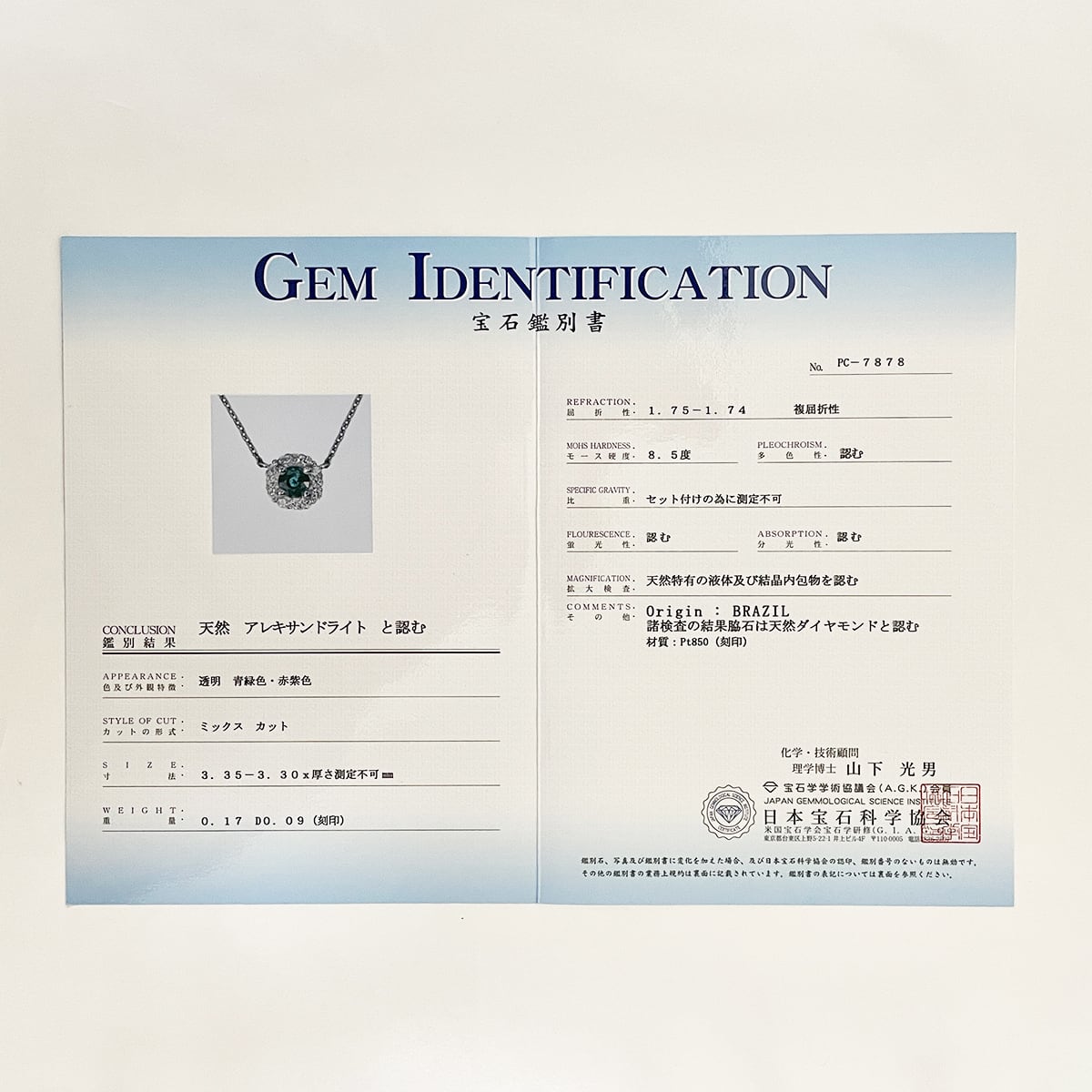 Pt850 天然アレキサンドライト 0.17ct 天然ダイヤモンド 0.09ct