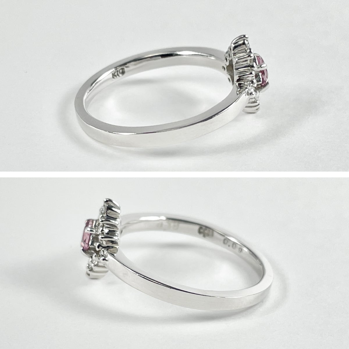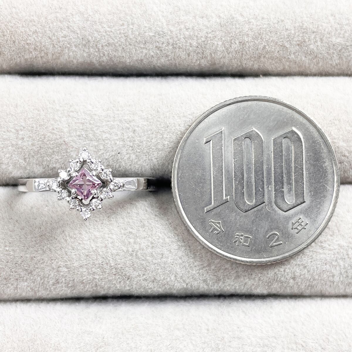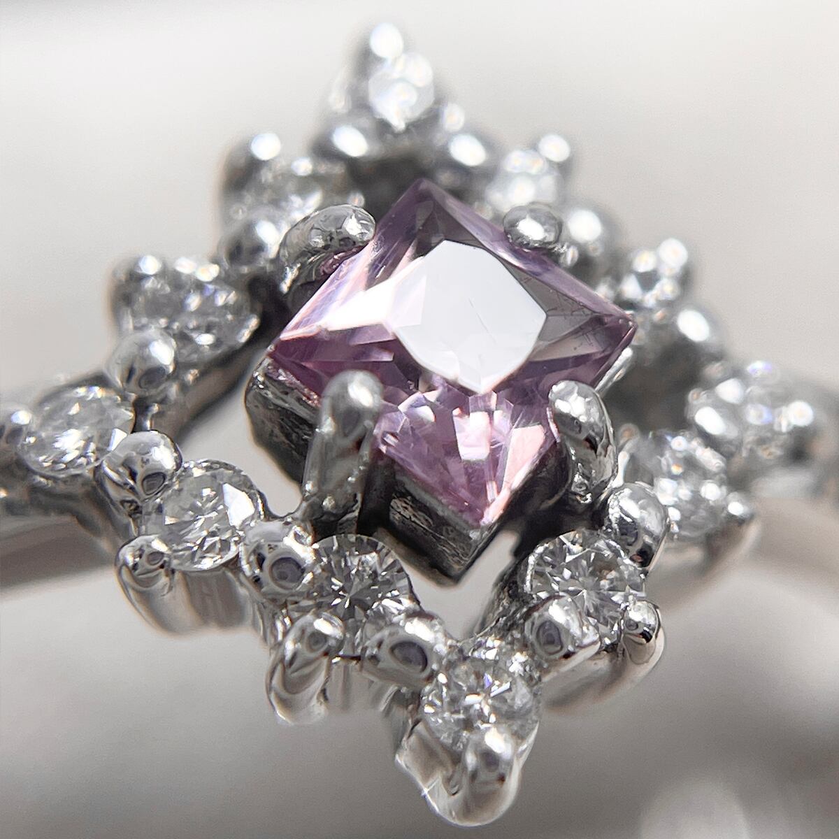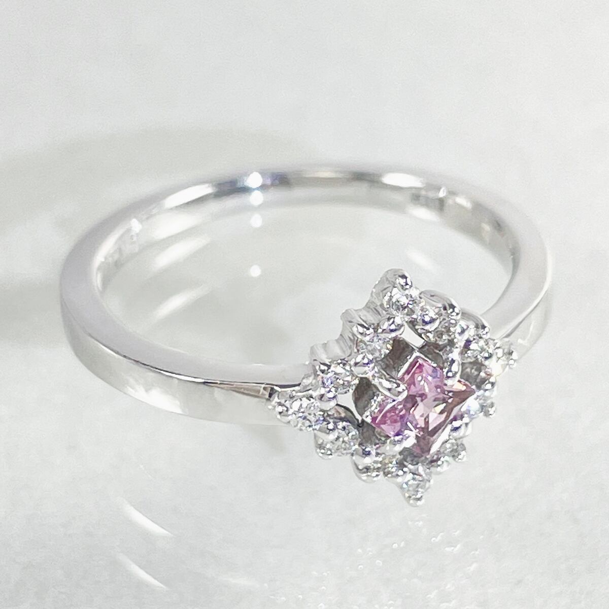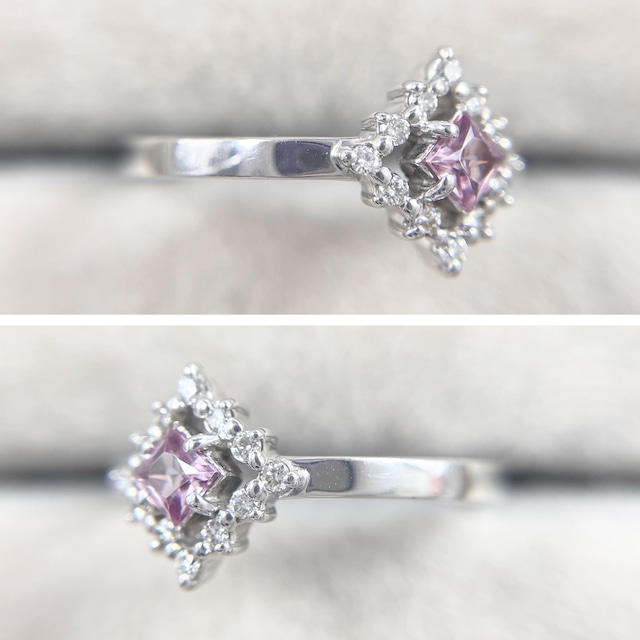 可憐なピンクサファイアを、ダイヤモンドの光で縁取ったデザイン。
