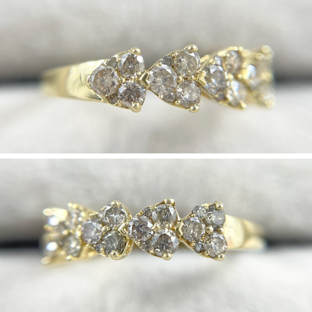 リッチなイエローゴールドと、溢れんばかりのダイヤモンドが織りなす、多幸感たっぷりのリング♡