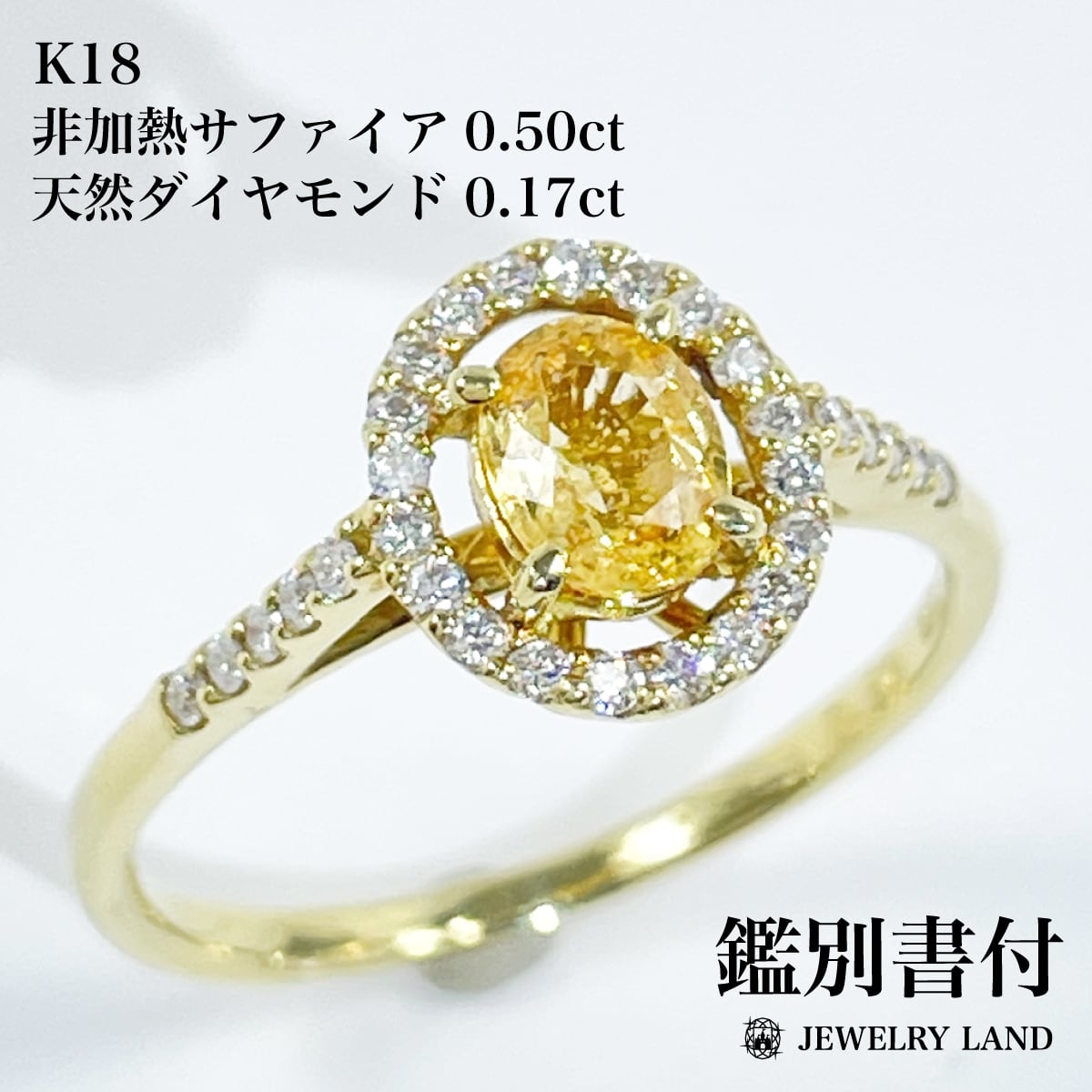K18 非加熱サファイア 0.50ct 天然ダイヤモンド 0.17ct リング