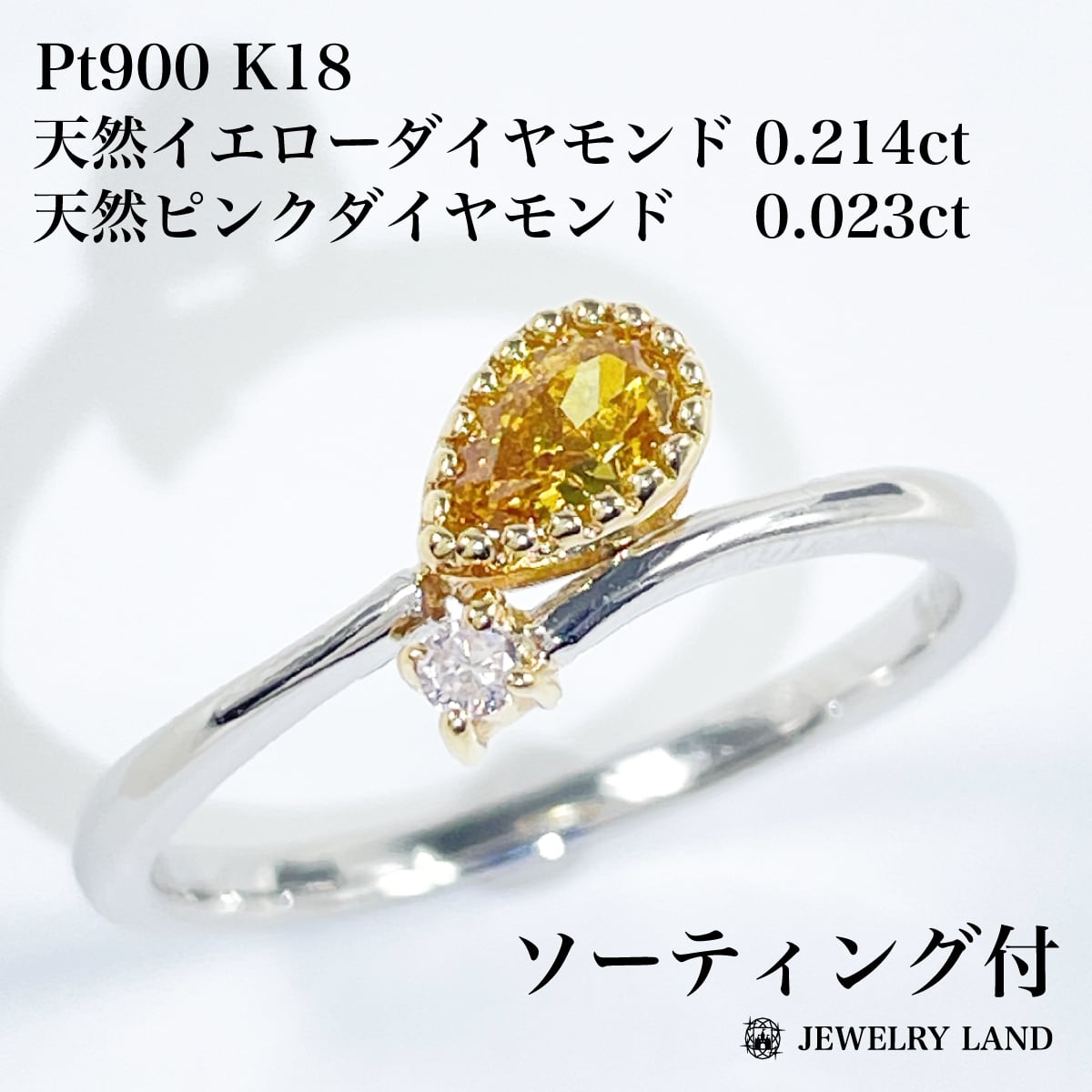 Pt900 K18 天然ダイヤモンド 0.214ct 0.023ct リング