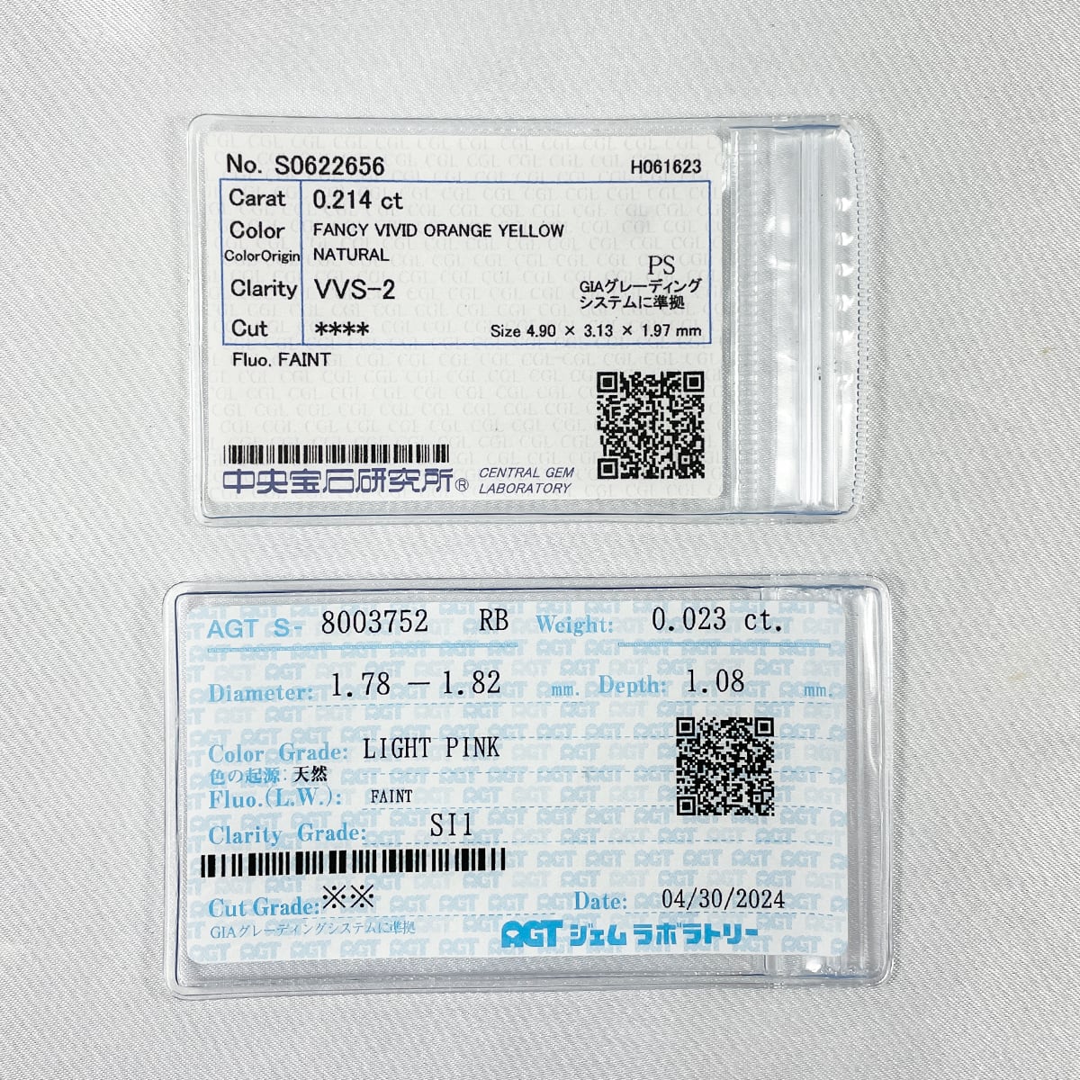 ・天然ダイヤモンド(ファンシービビッドオレンジイエロー、VVS2)(ライトピンク、SI1)