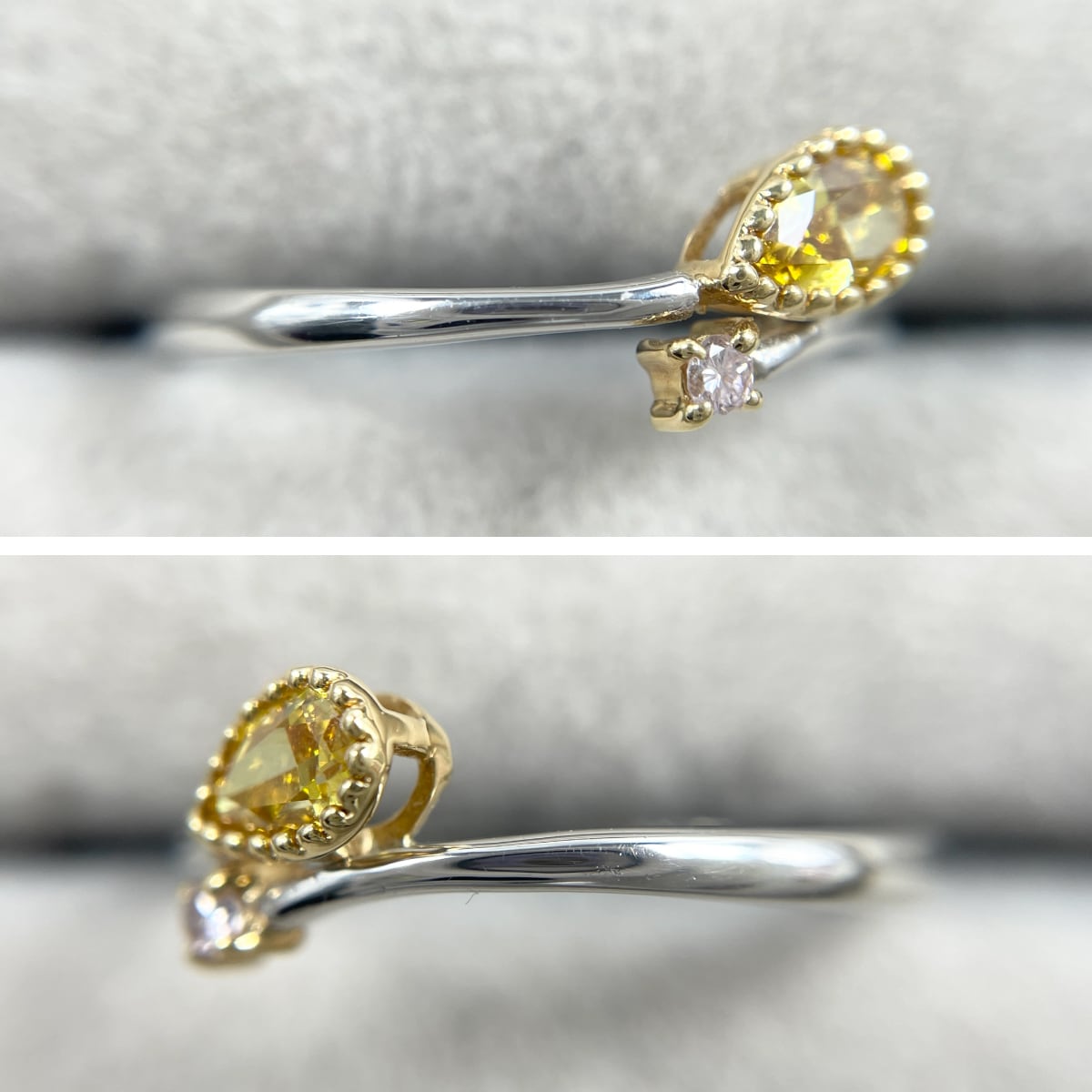 太陽のようなイエローダイヤモンドと、桜のように可憐なピンクダイヤモンド。
