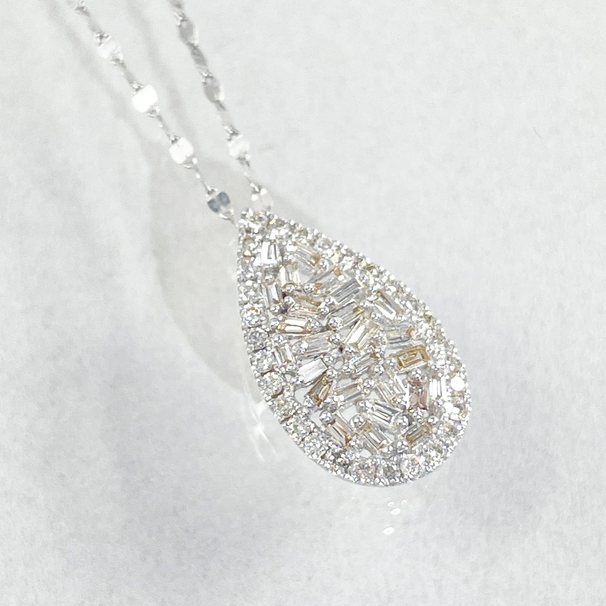シャープな輝きを放つテーパーカットダイヤモンドを贅沢に敷き詰め、都会的で洗練された印象に仕上げたネックレス✨