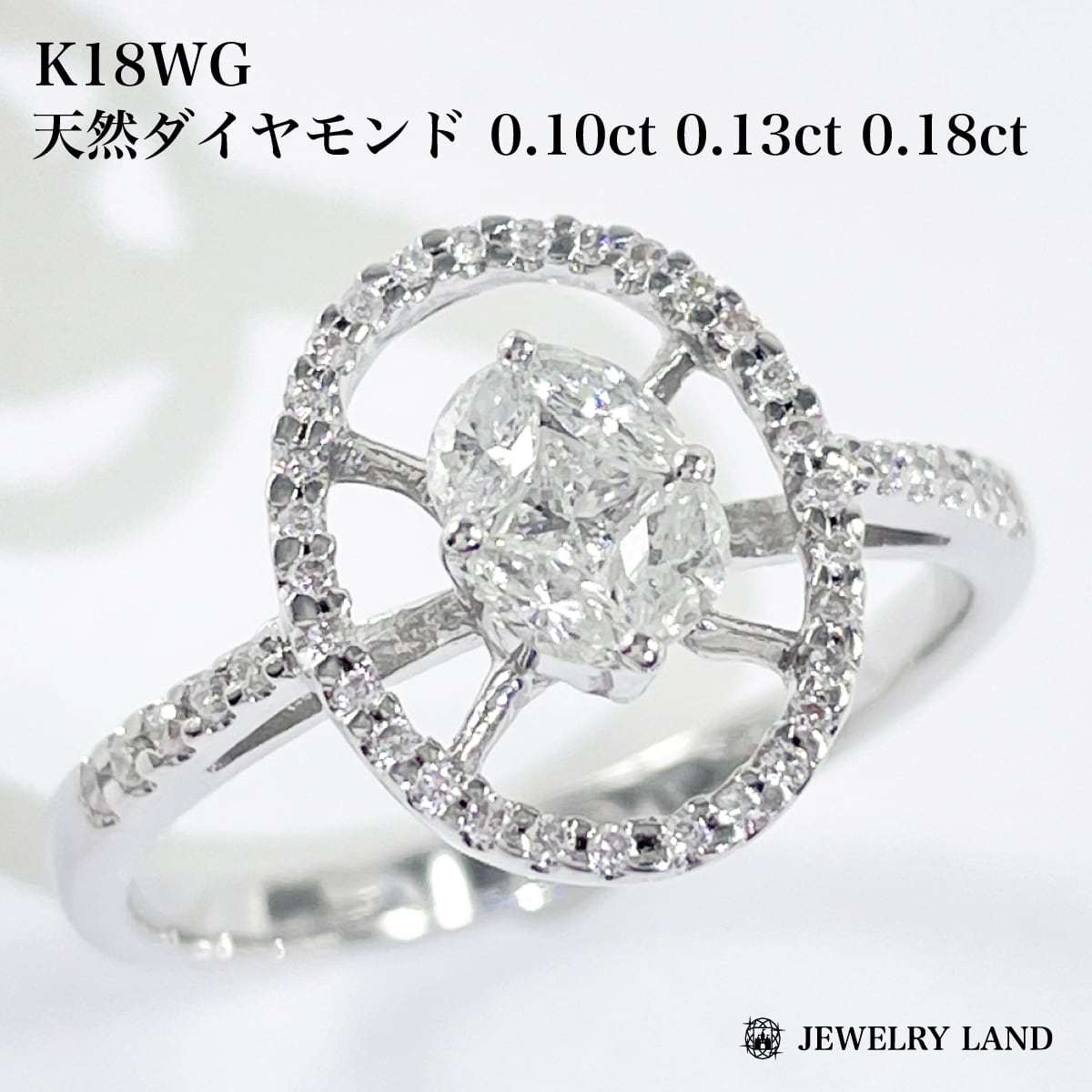 K18WG 天然ダイヤモンド 0.10ct 0.13ct 0.18ct リング