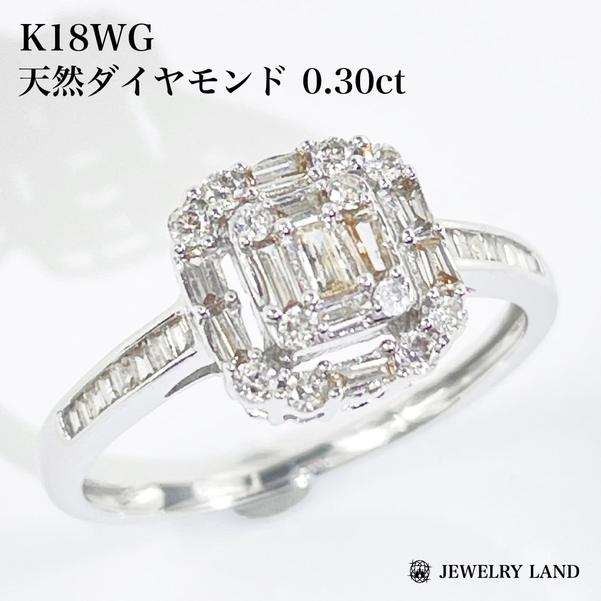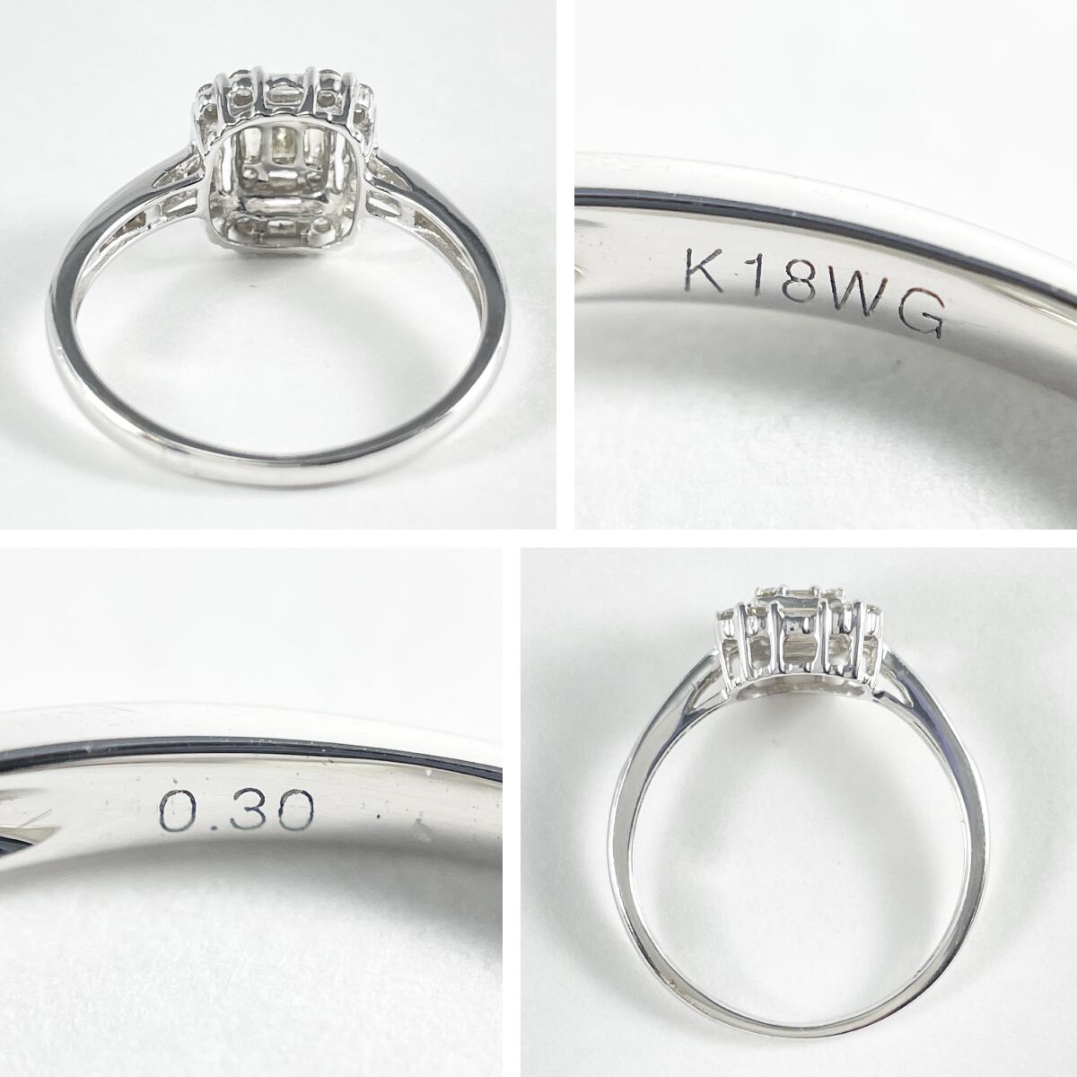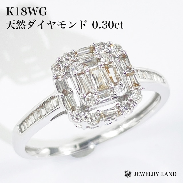 K18WG 天然ダイヤモンド 0.30ct リング