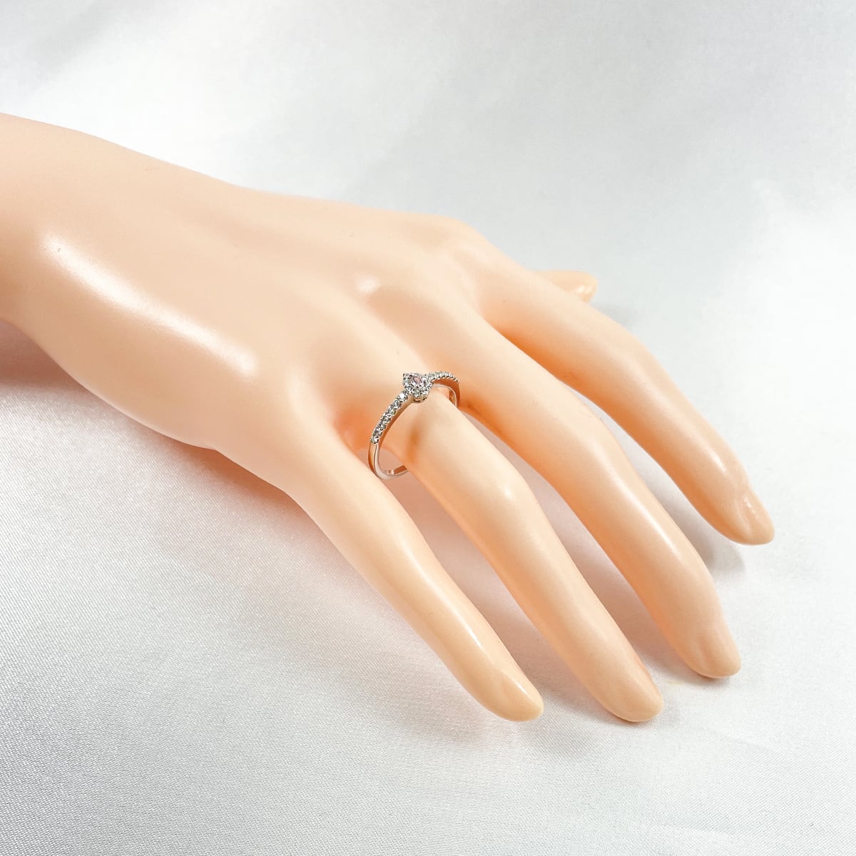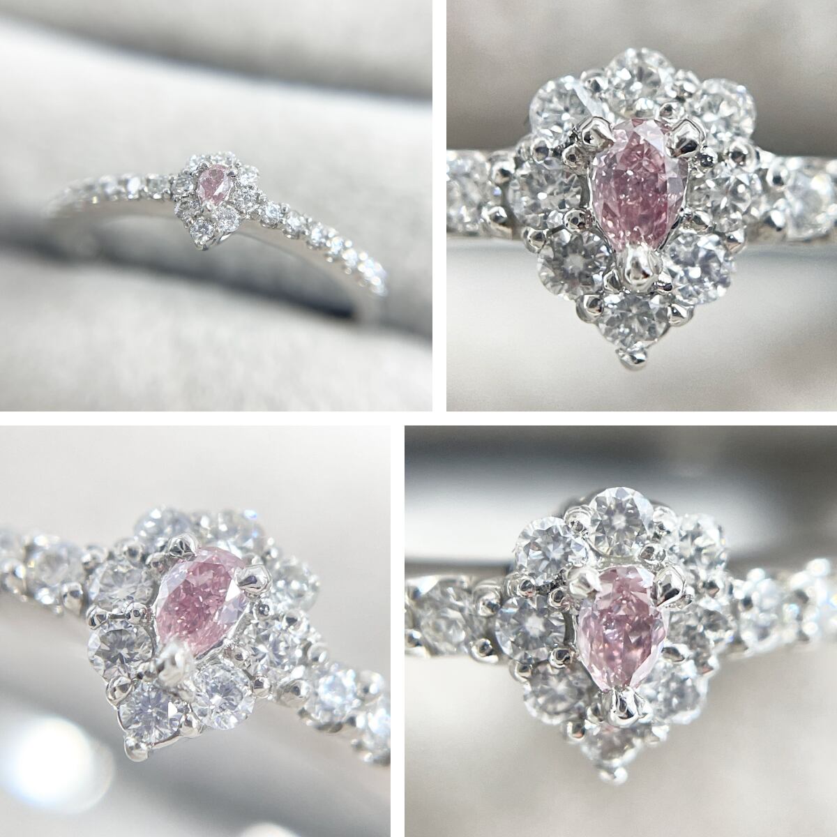 繊細なペアシェイプを囲むダイヤモンドの光が、主役の色味をより引き立てます。