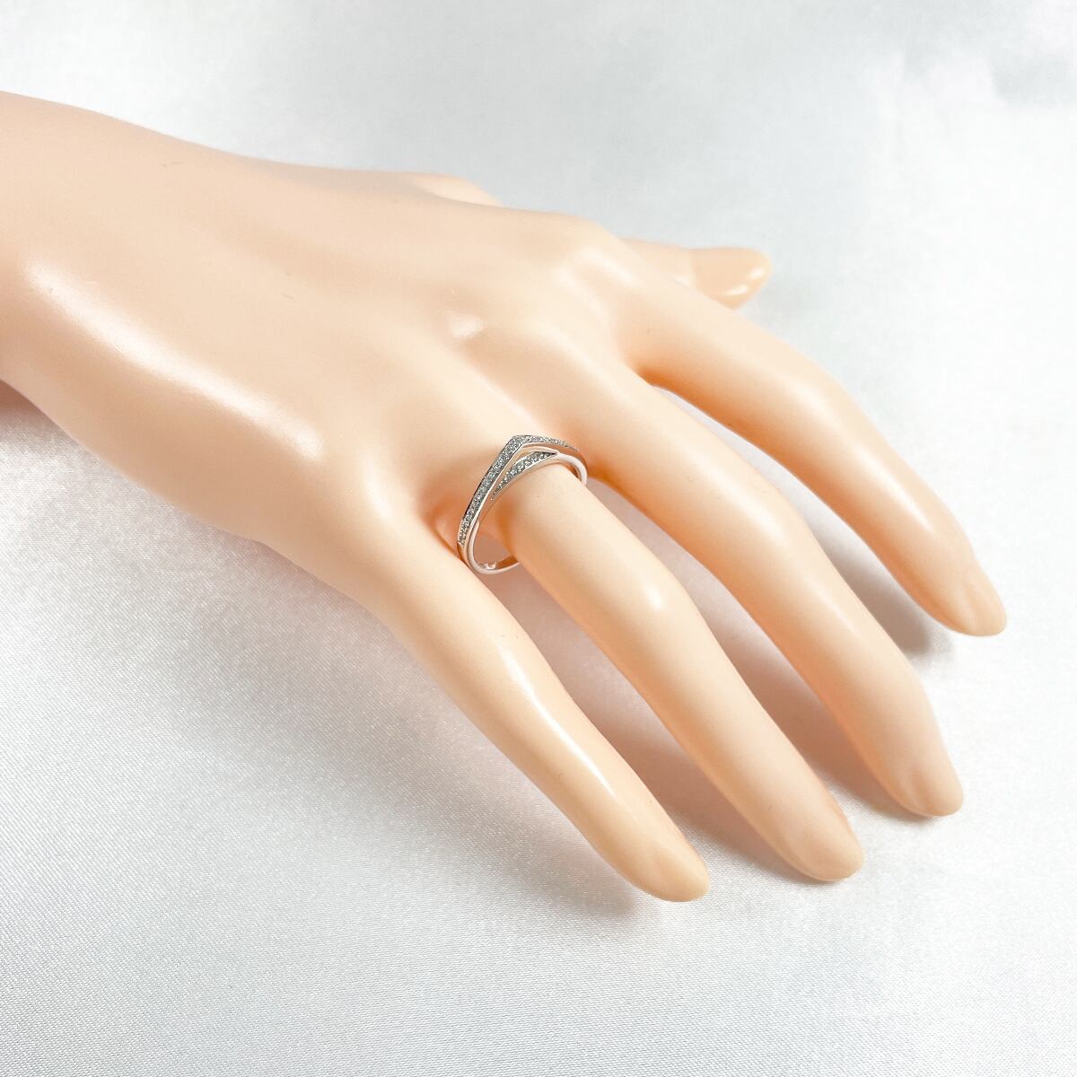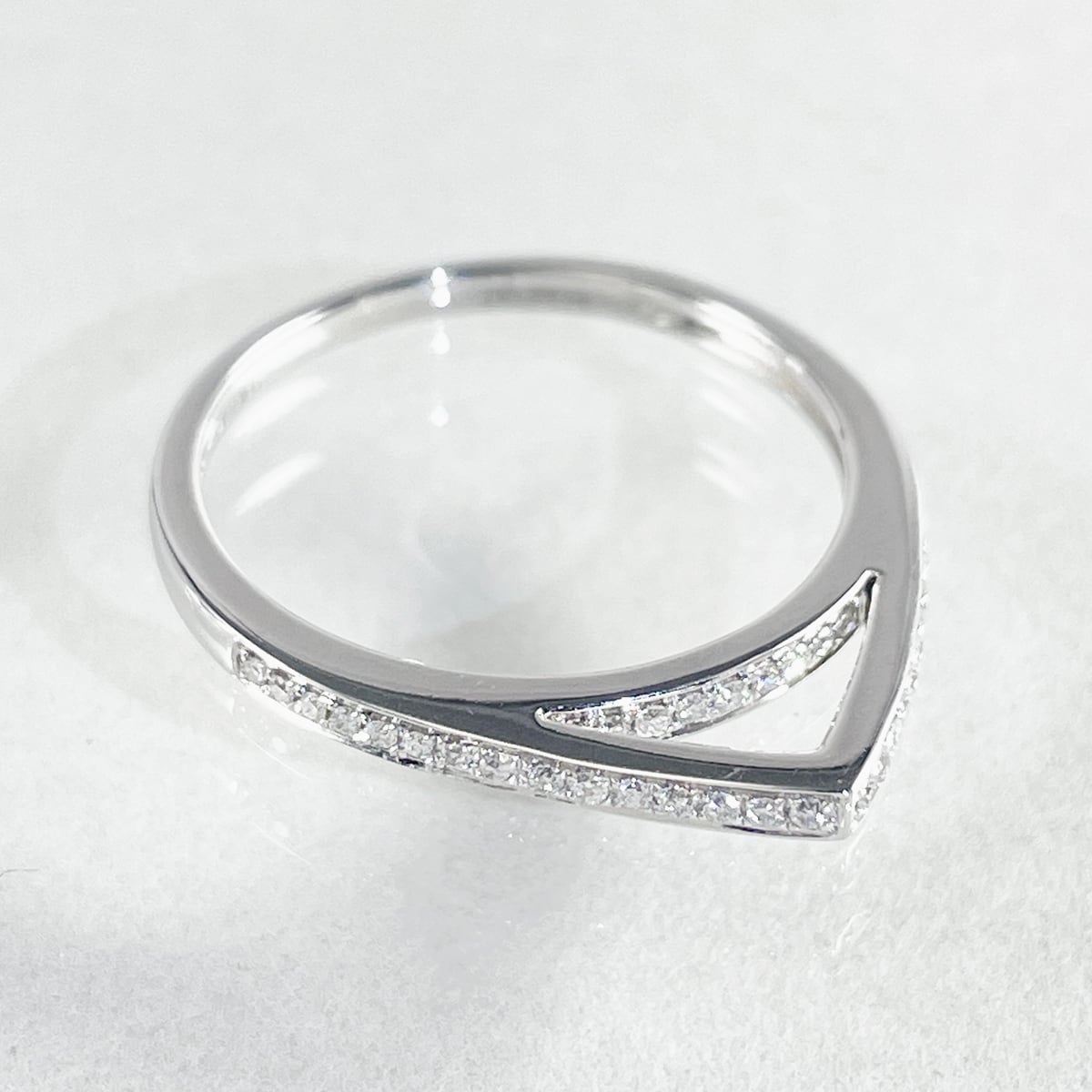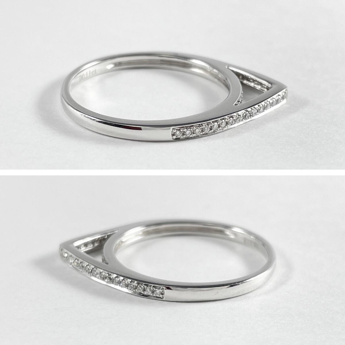 幾何学的なラインが美しい、モダンなダイヤモンドリング。