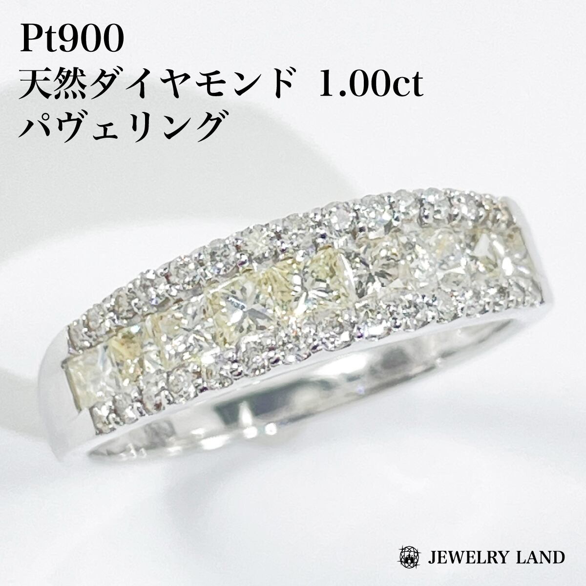 Pt900 プリンセスカット ダイヤモンド 1.00ct パヴェ 指輪