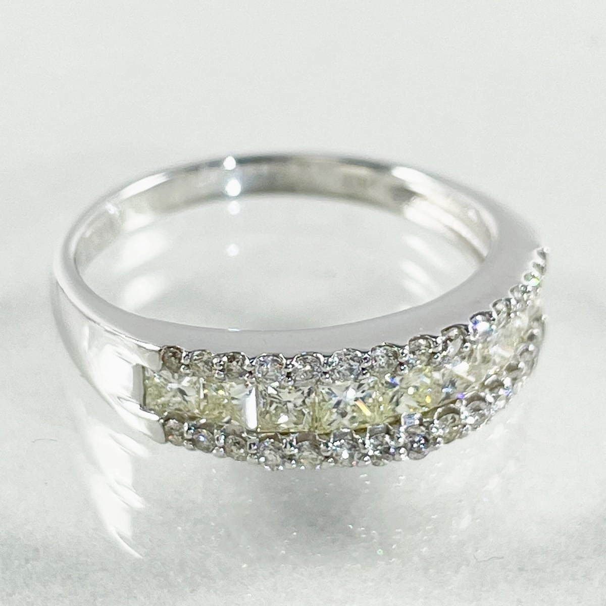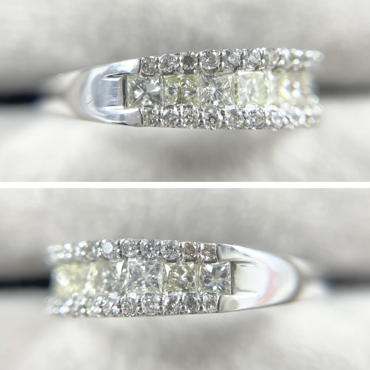 黄色味を帯びた爽やかなダイヤと、透明感あふれるメレダイヤの贅沢なパヴェリング✨