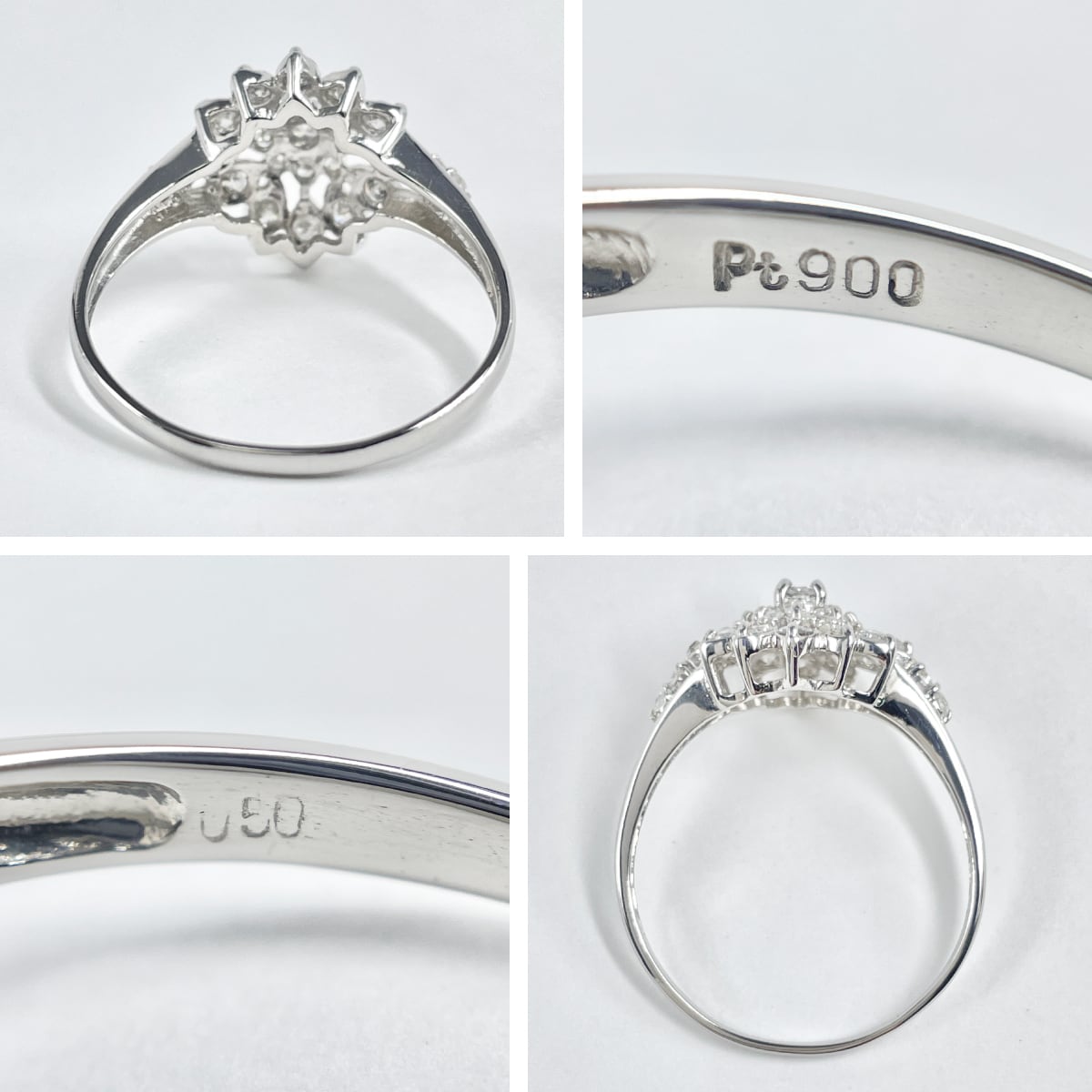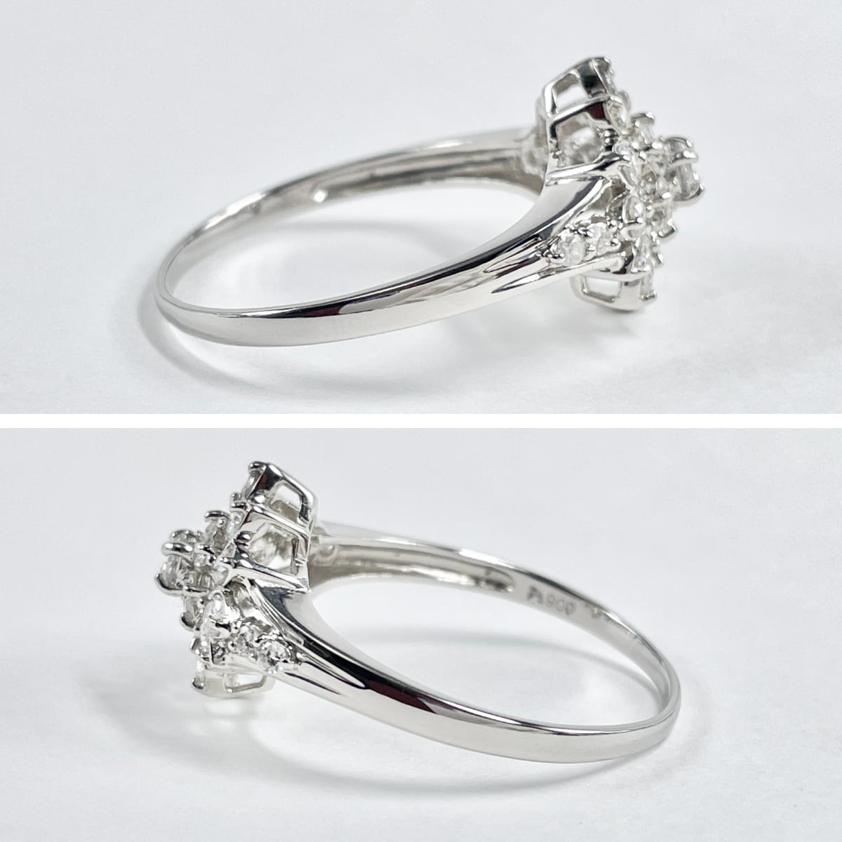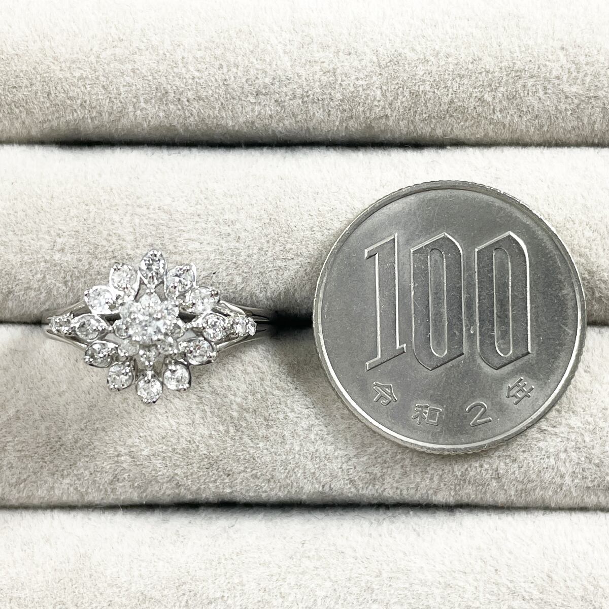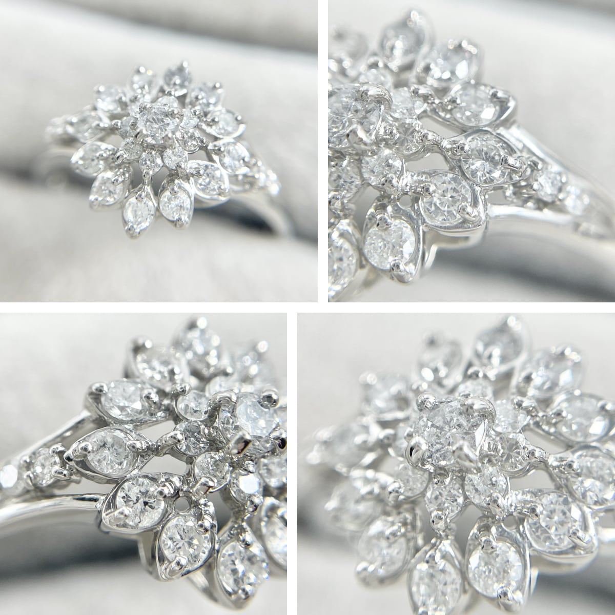 指先に咲き誇る光の花が美しい、ダイヤモンドのリング。