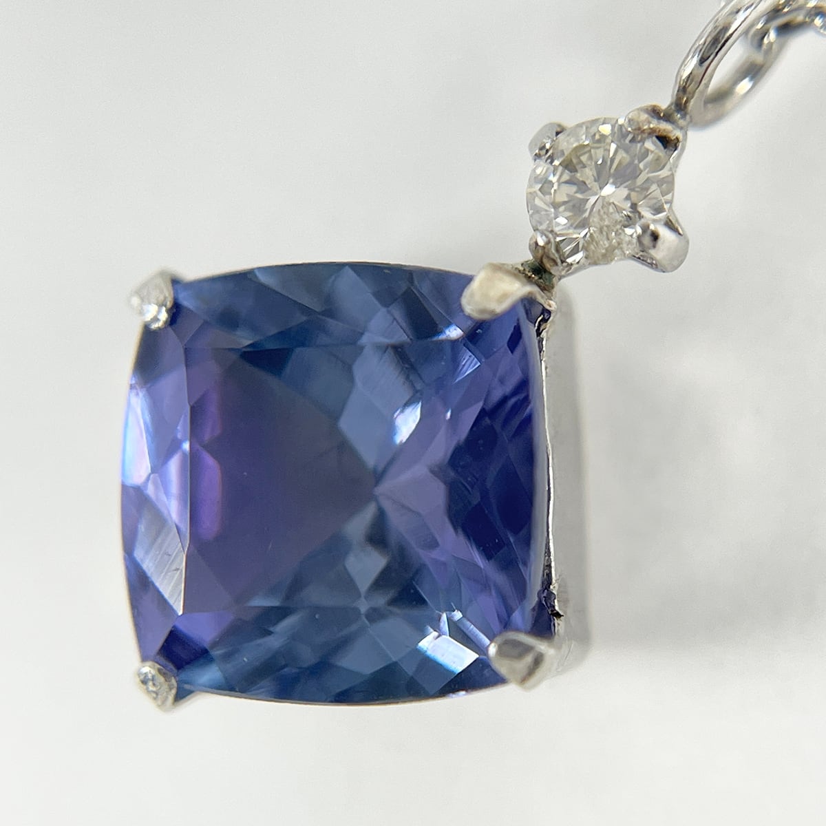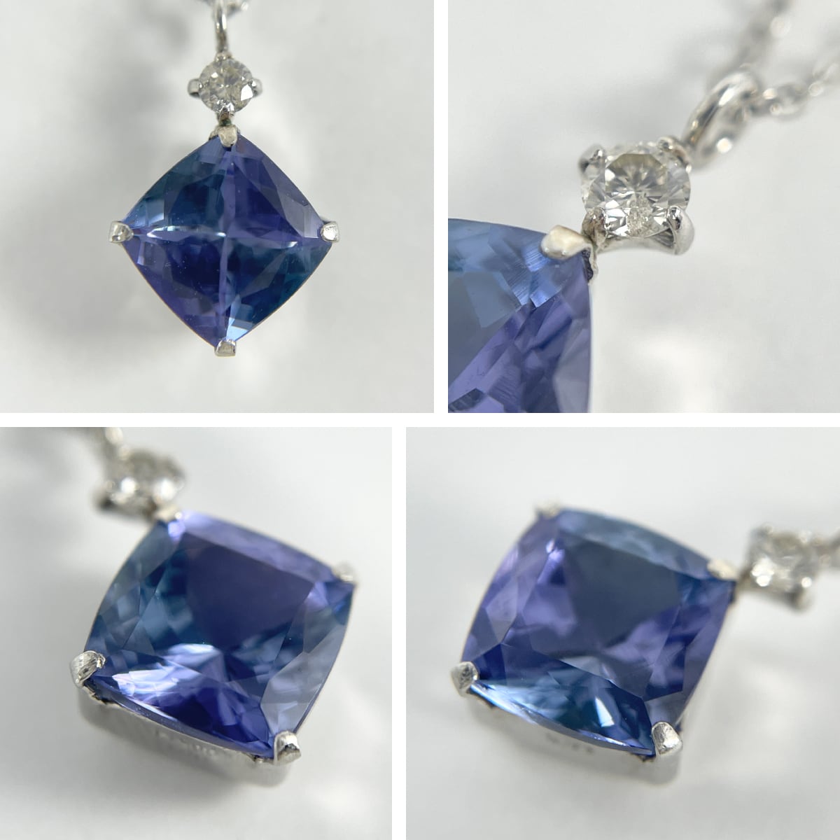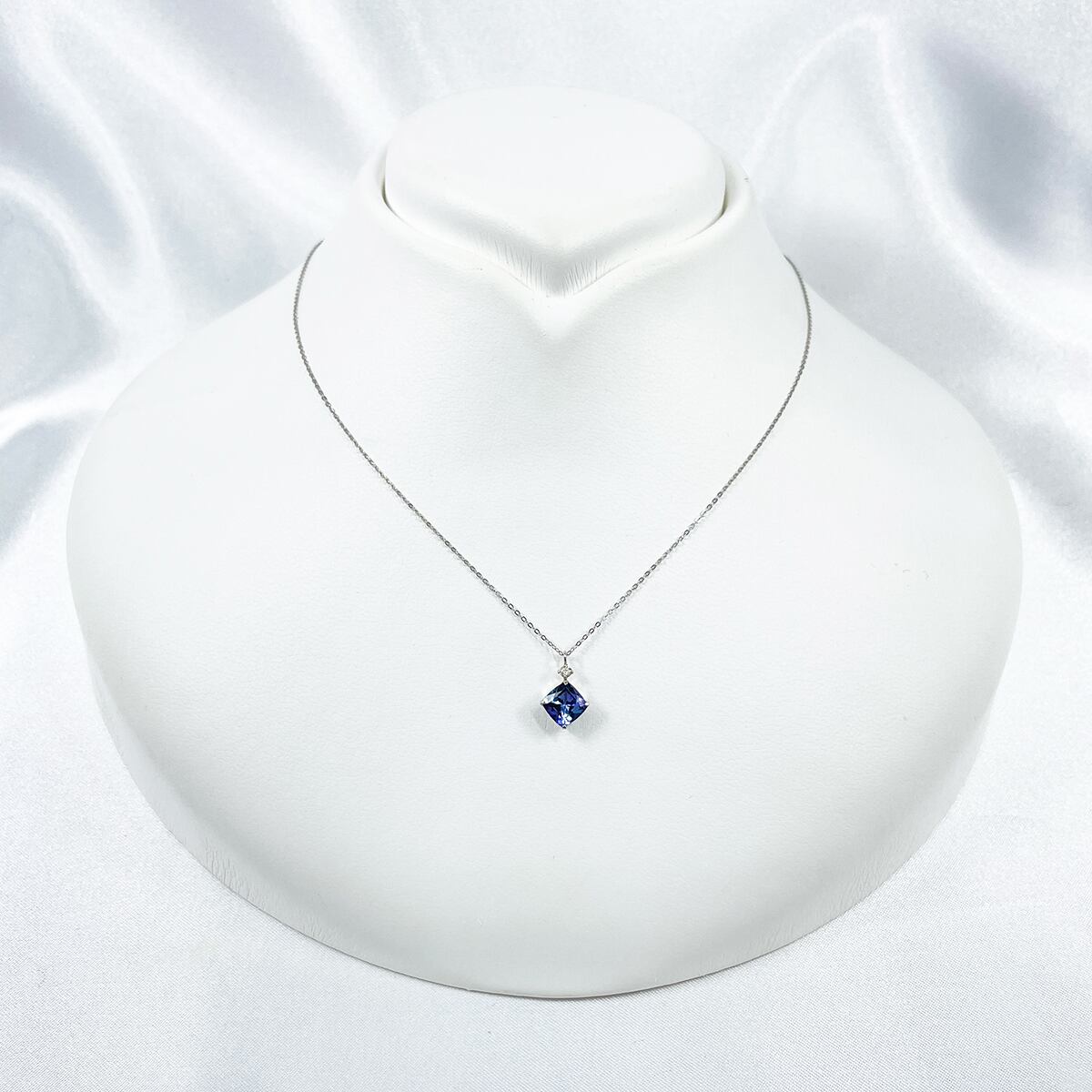 深く鮮やかな多色性を持つタンザナイトにダイヤモンドの煌めきを添えたネックレス。