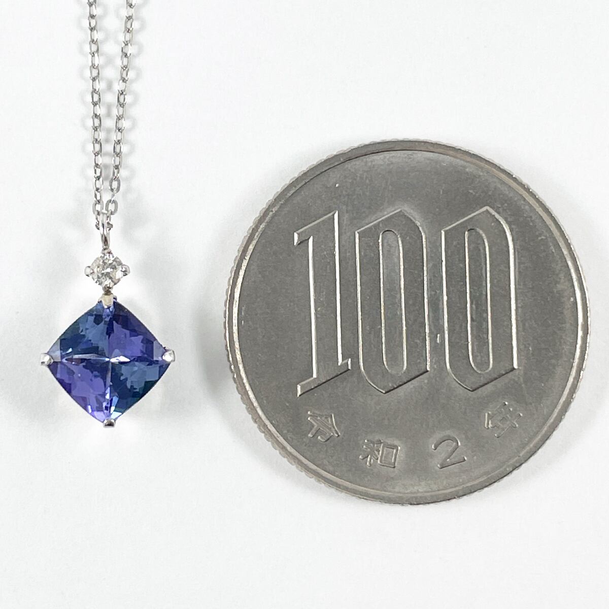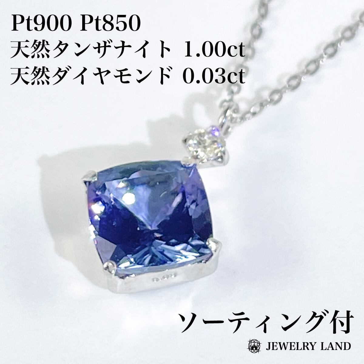 【ソーティング付】Pt900 Pt850 タンザナイト 1.00ct ダイヤ 0.03ct ネックレス