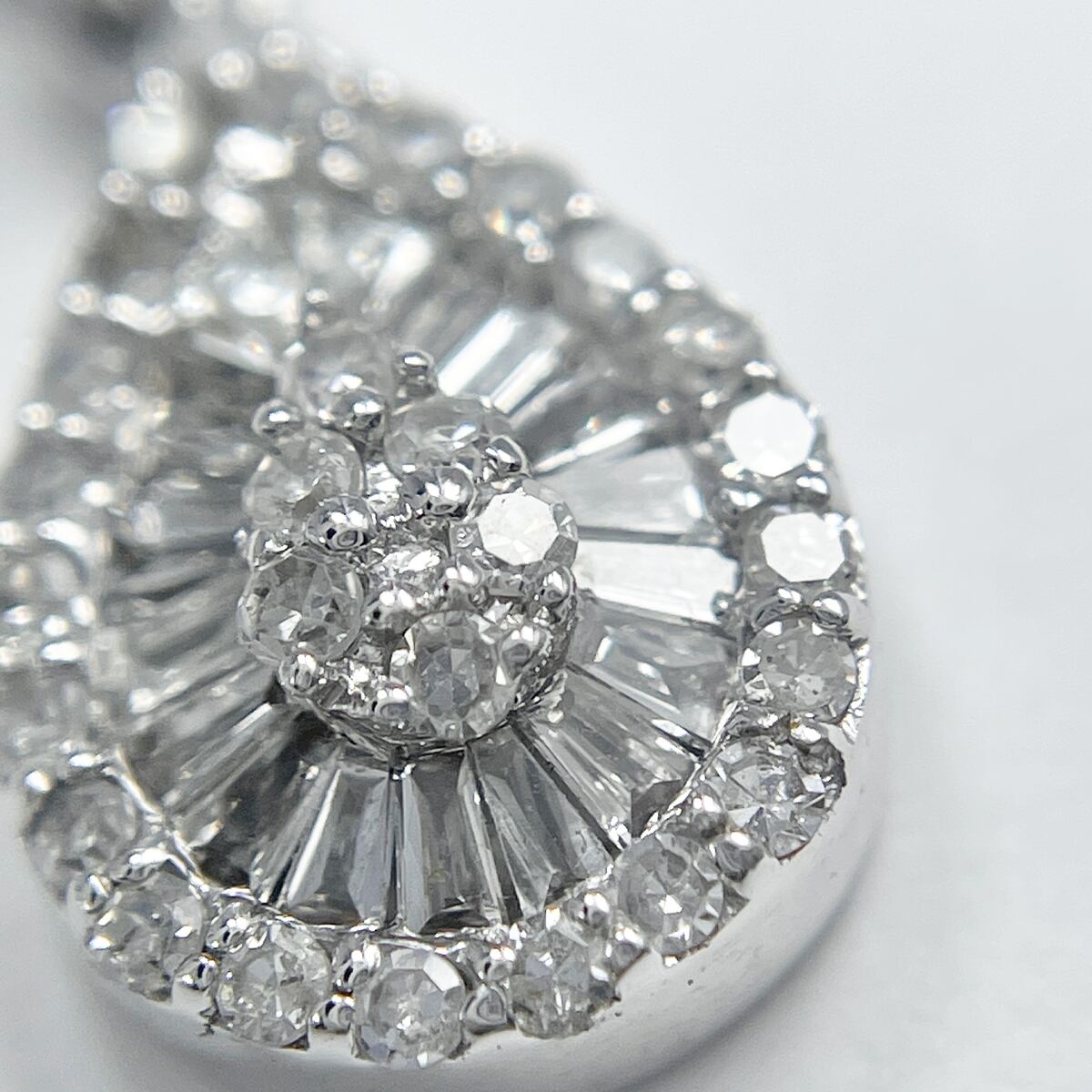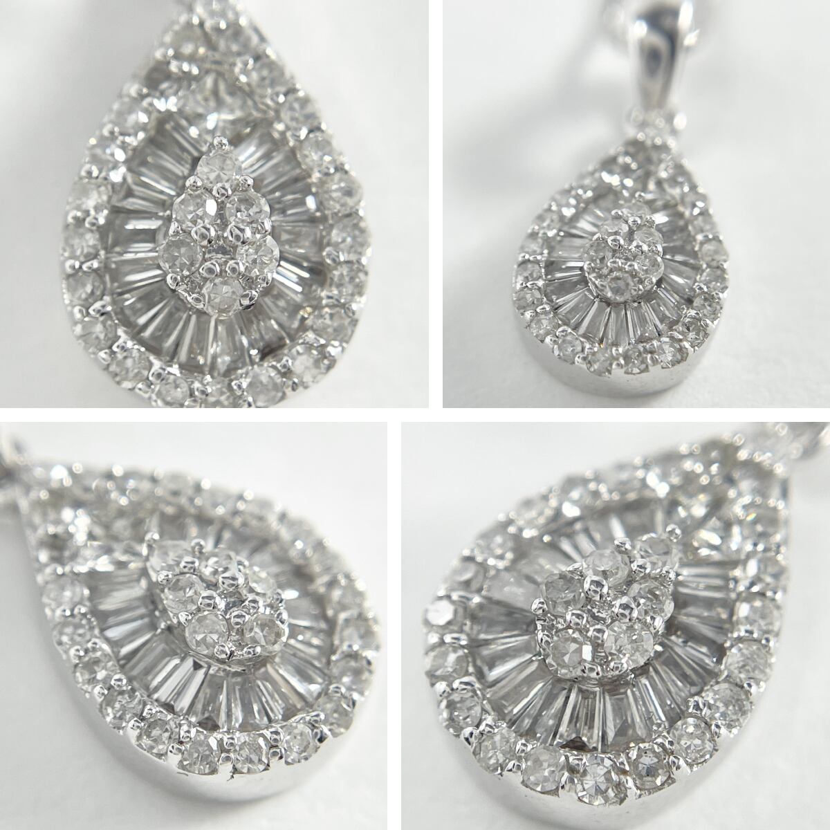 テーパーカットとラウンドカットのダイヤモンドを組み合わせた、繊細で華やかなしずく型のネックレストップ。