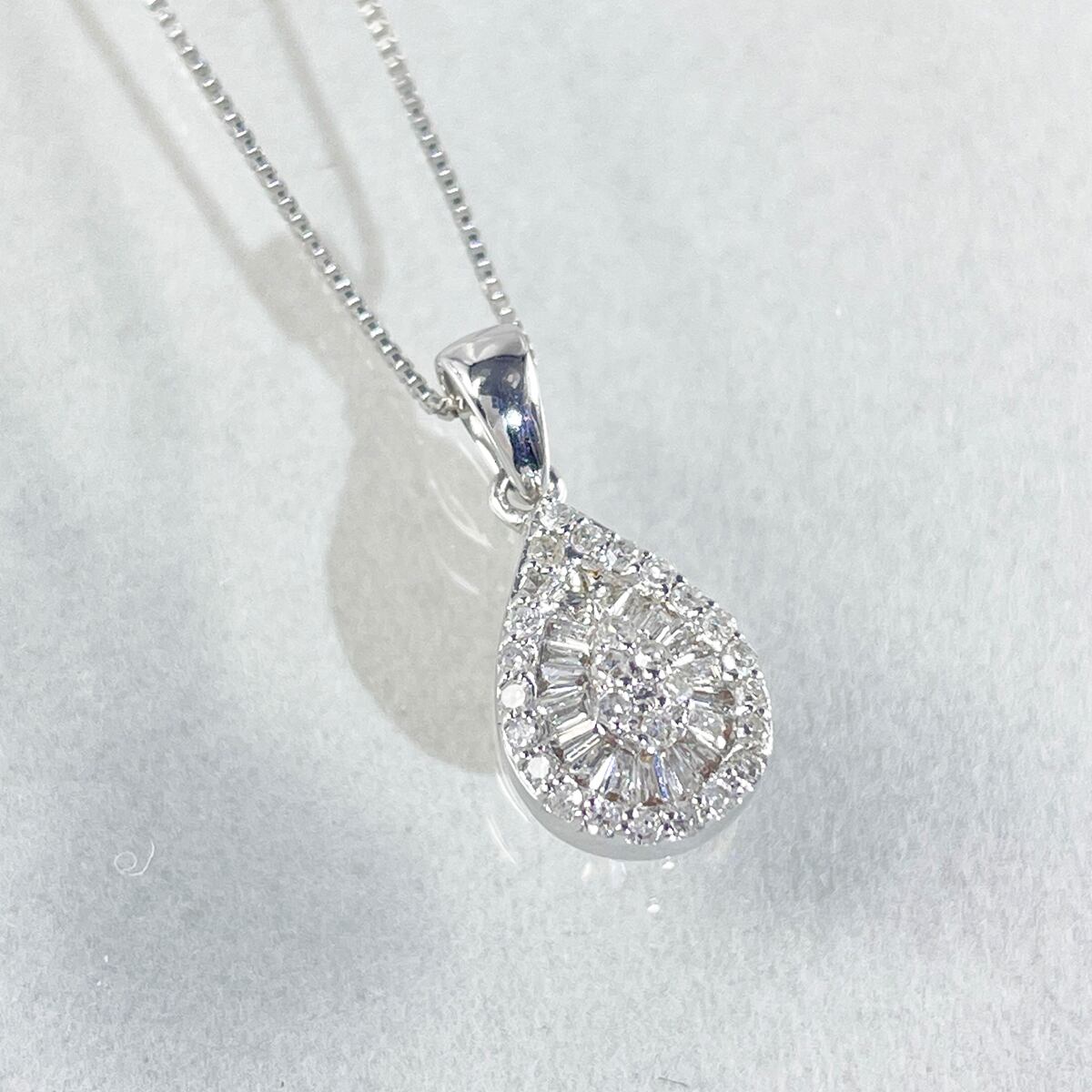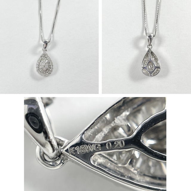 K18WG ダイヤ 0.20ct 雫 ホワイトゴールド ネックレストップ