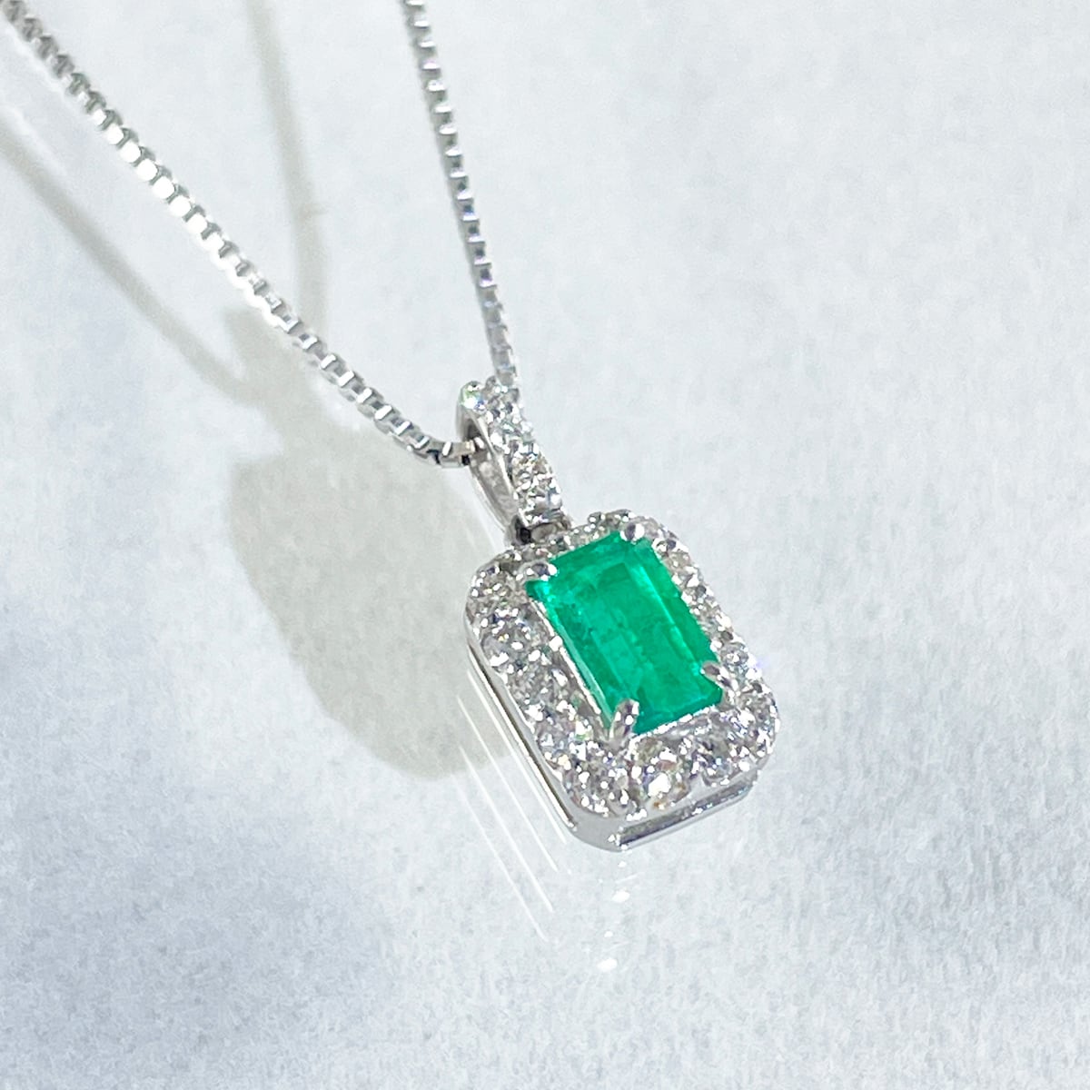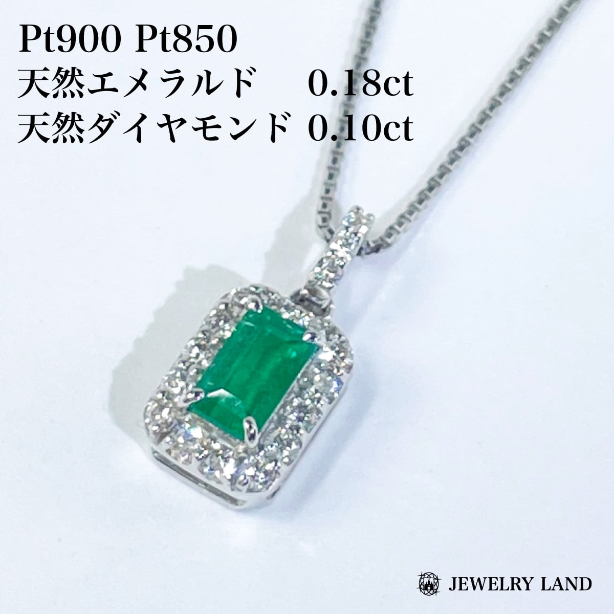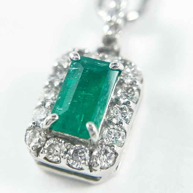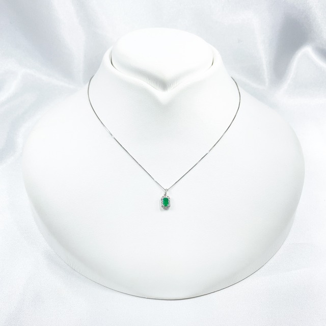 Pt900 Pt850 エメラルド0.18ct ダイヤ プラチナ ネックレス