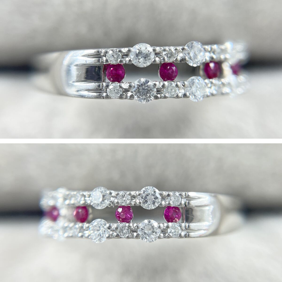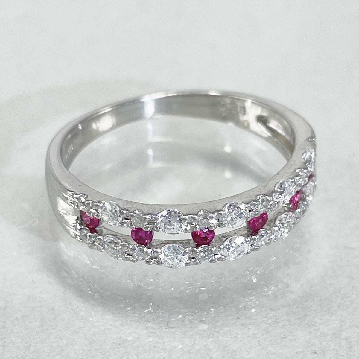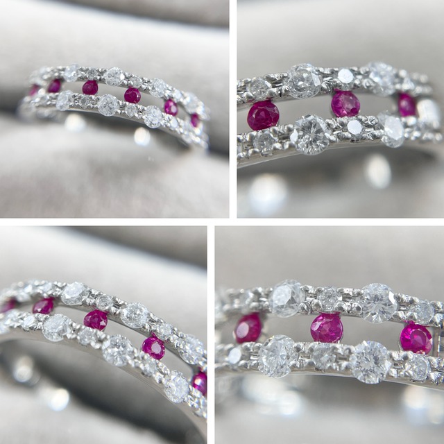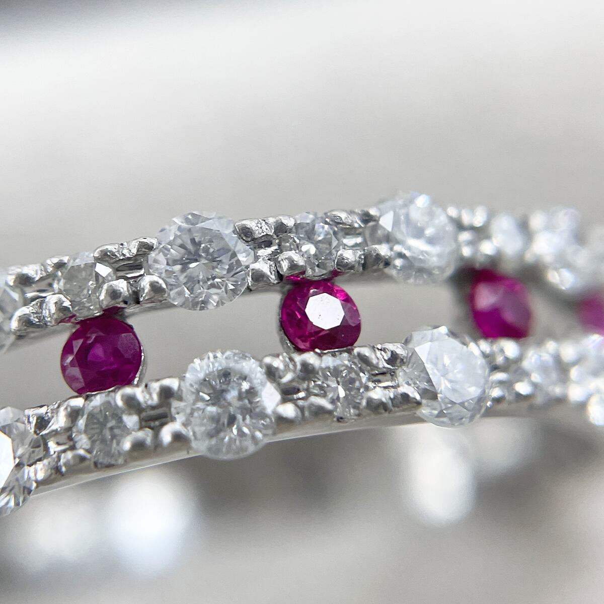 ルビーの鮮やかな赤とダイヤモンドの煌めきが連なる華やかなデザイン。