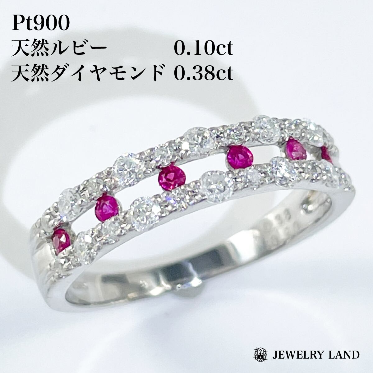Pt900 天然ルビー 0.38ct 天然ダイヤモンド 0.10ct リング