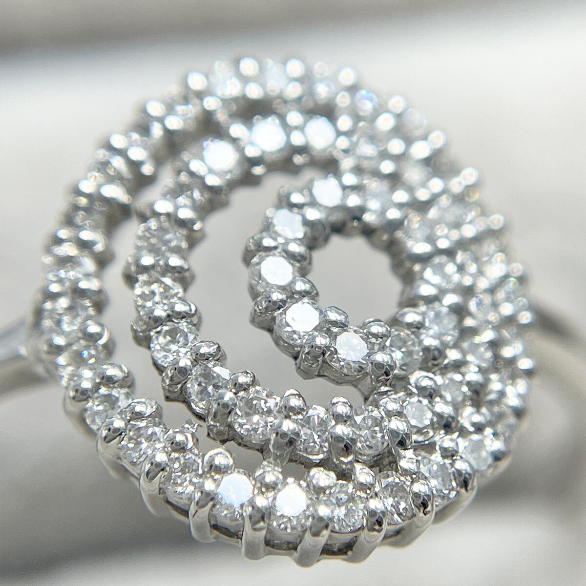 無数のダイヤモンドが華やかな輝きを放つリング。