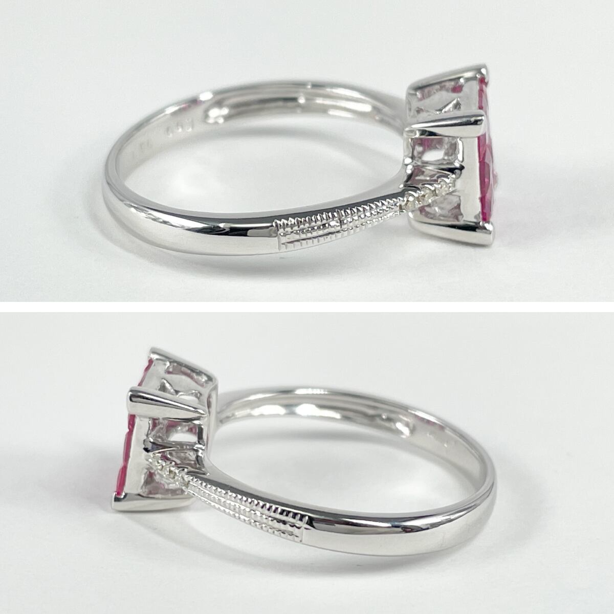 K18WG 天然ルビー 0.90ct 天然ダイヤ 0.03ct リング