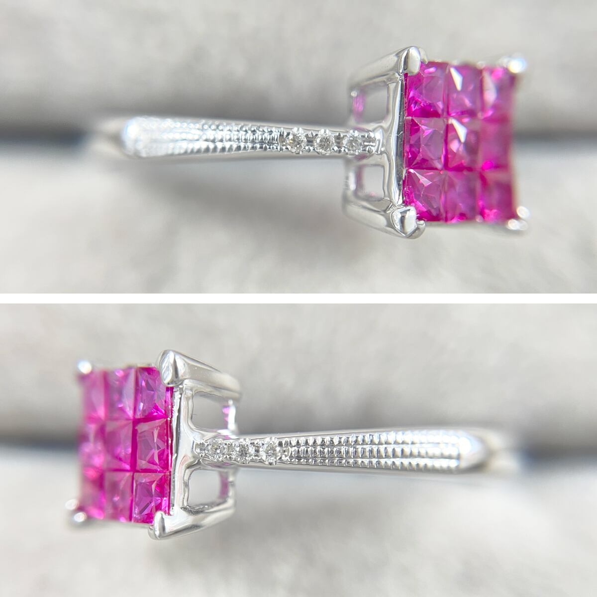 洗練されたスクエアフォルムのプリンセスカットルビー。
