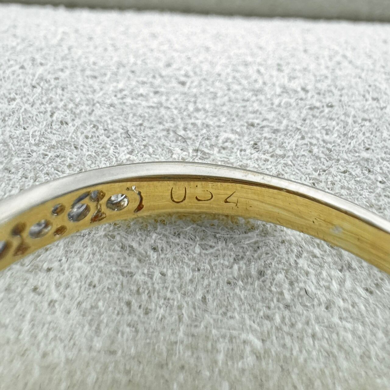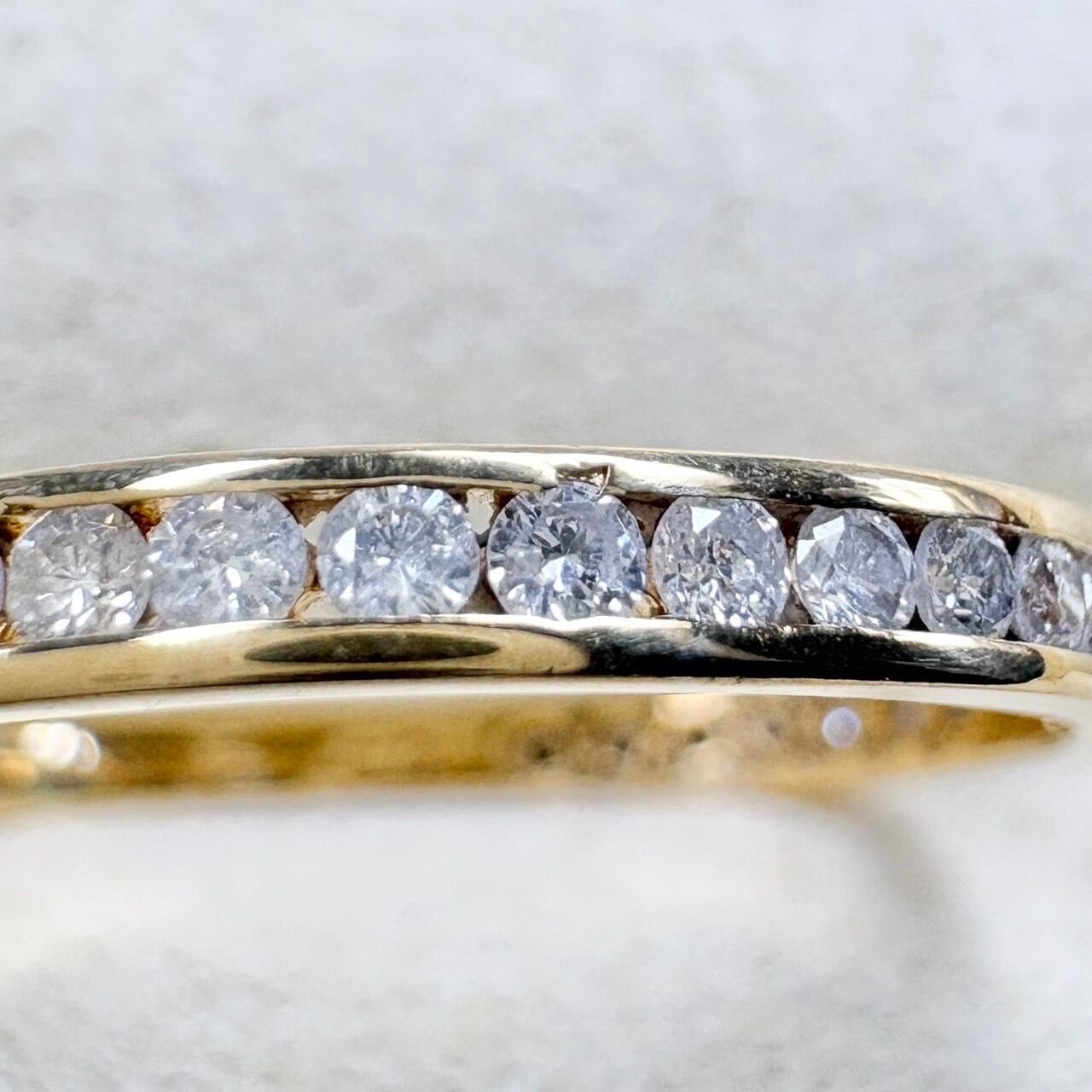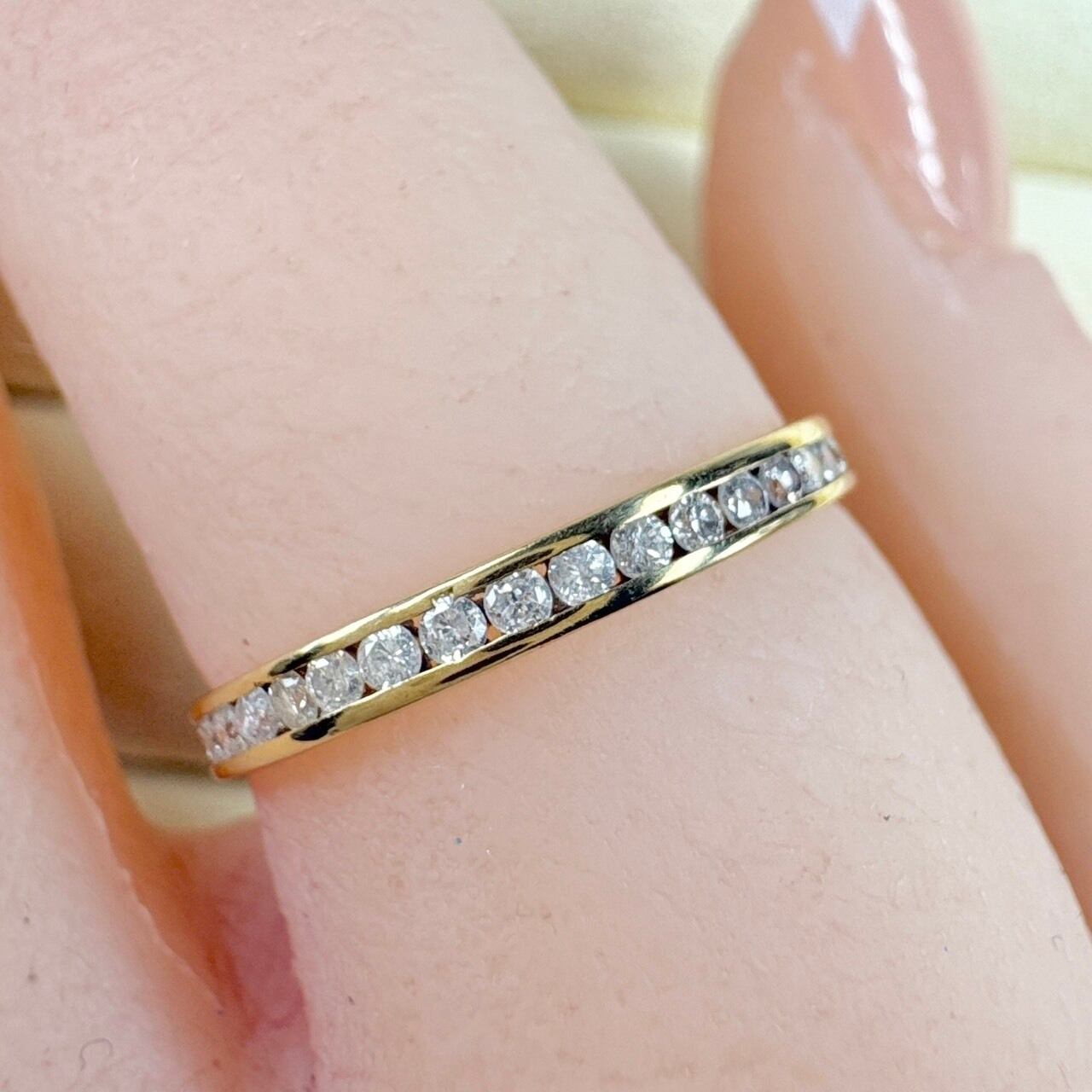 K18の地金に、整然と並んだダイヤの輝きが上品なハーフエタニティリング。