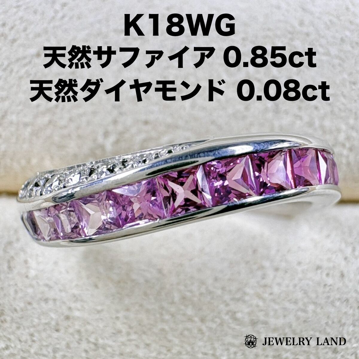 K18WG 天然サファイア 0.85ct 天然ダイヤ 0.08ct リング