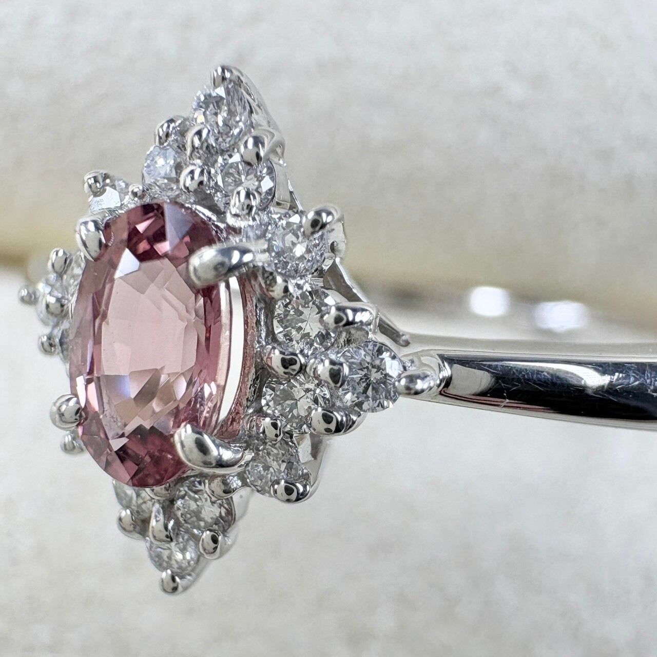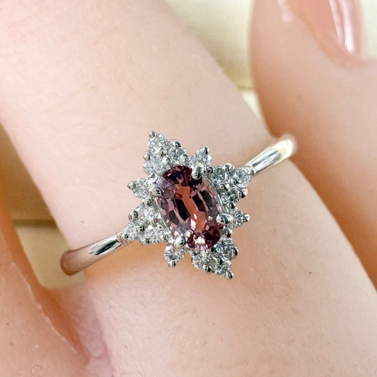 菱形に広がるダイヤの輝きが、指をすらっと綺麗に見せてくれる美シルエット。