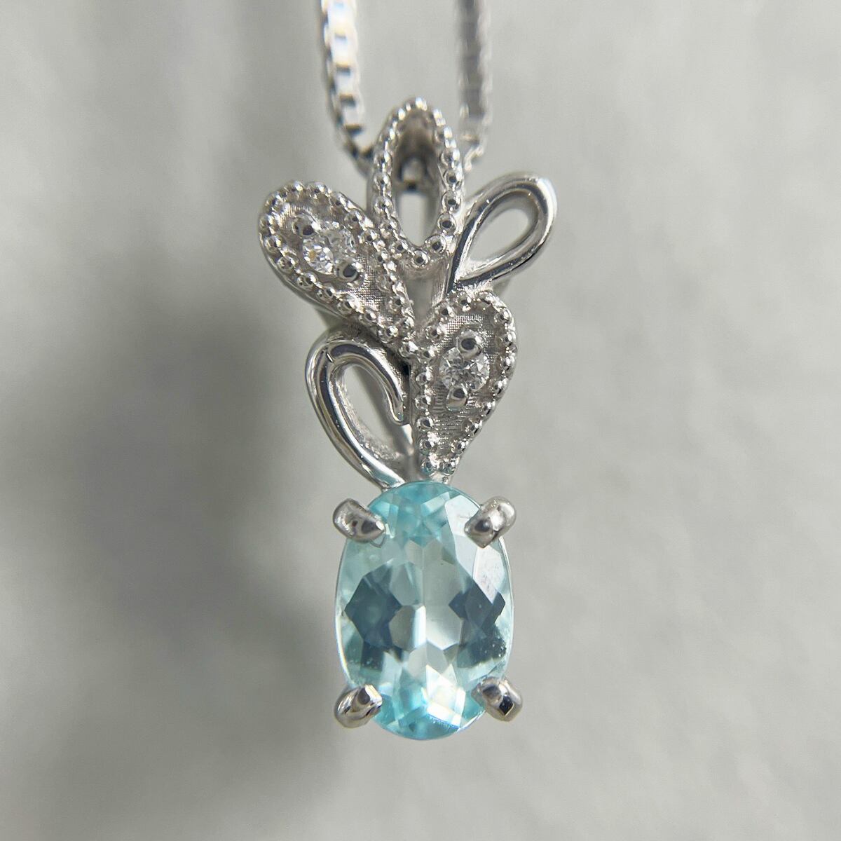 夜になるとさらに美しく輝くと言われているアクアマリンがチャームのネックレス。