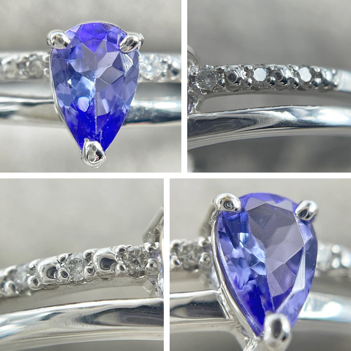 K18WG 天然タンザナイト 0.35ct ダイヤモンド 0.08ct リング