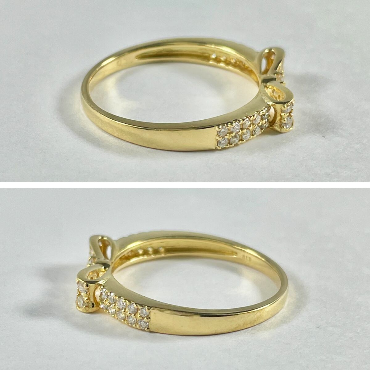 控えめなリボンの装飾が可愛らしい細身のパヴェタイプリング。