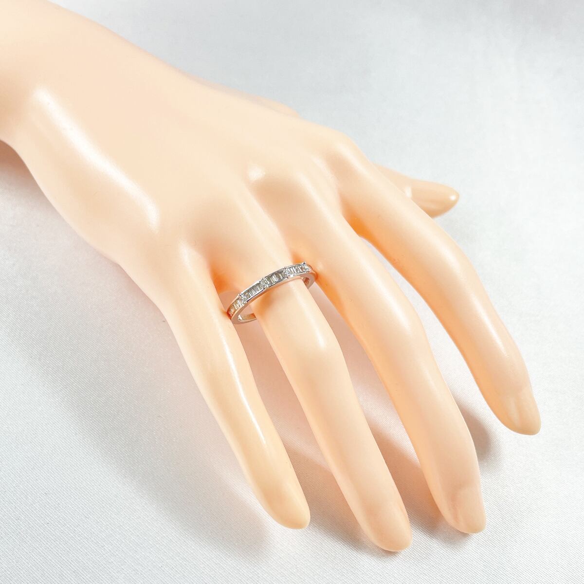 テーパーカットのダイヤモンドが敷き詰められたハーフエタニティリング。