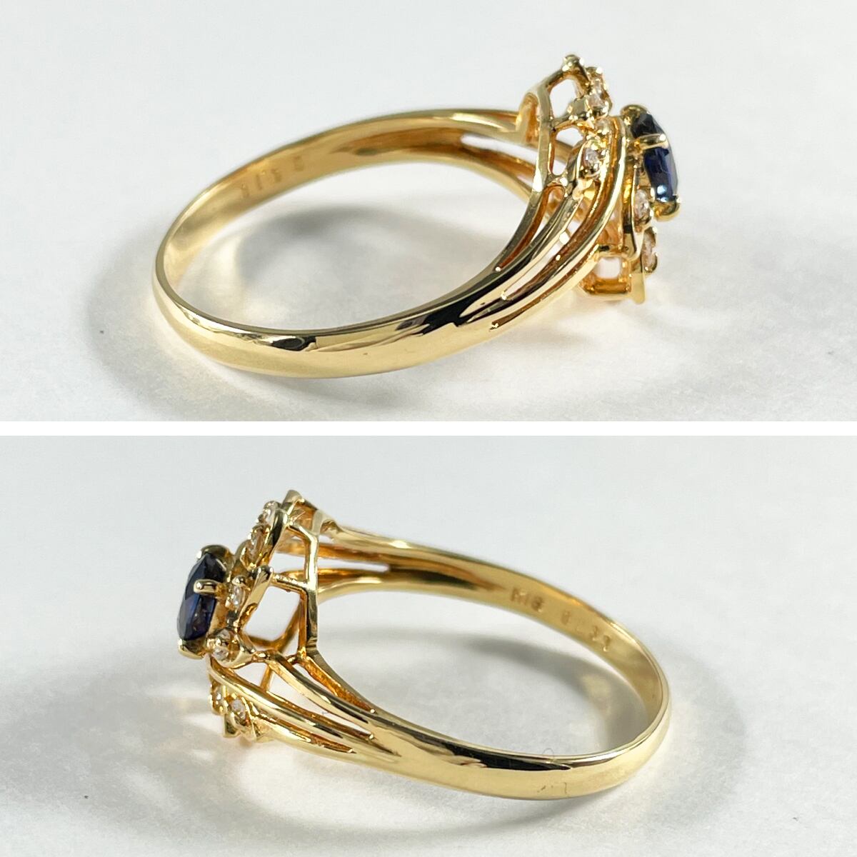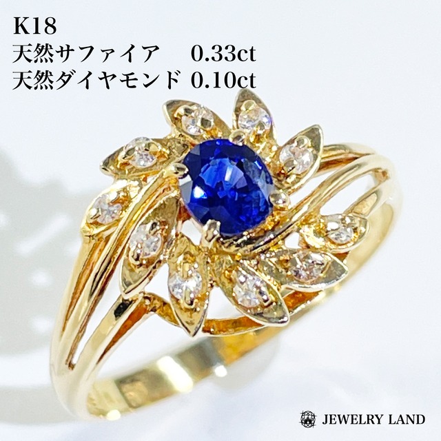 K18 天然サファイア 0.33ct 天然ダイヤモンド 0.10ct リング