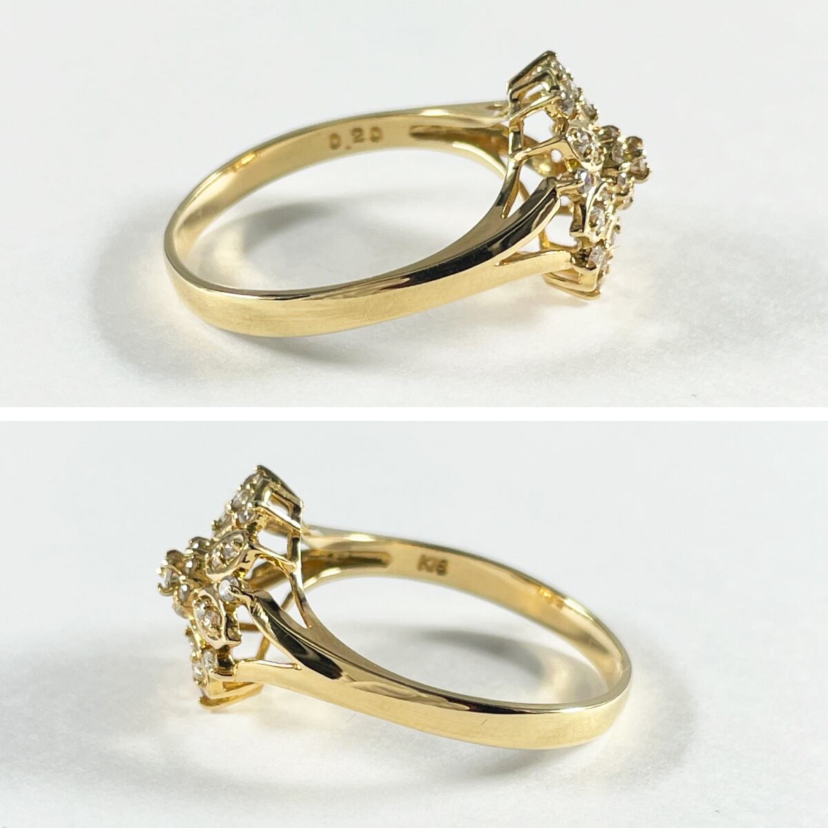 18金の地金にダイヤモンドがキラキラと輝くリング。
