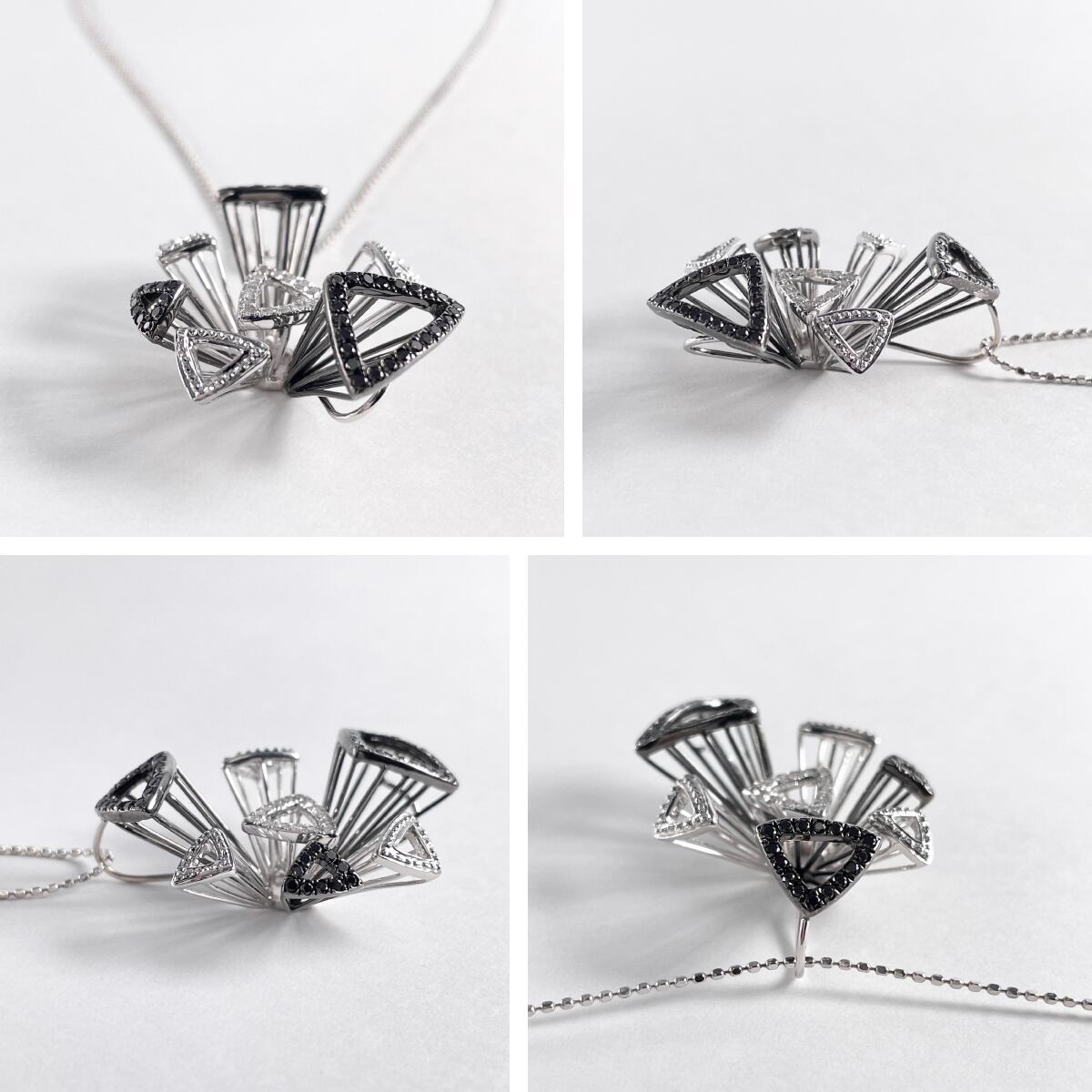 幾何学的なデザインが目を惹く、ダイヤモンドのペンダントトップ。
