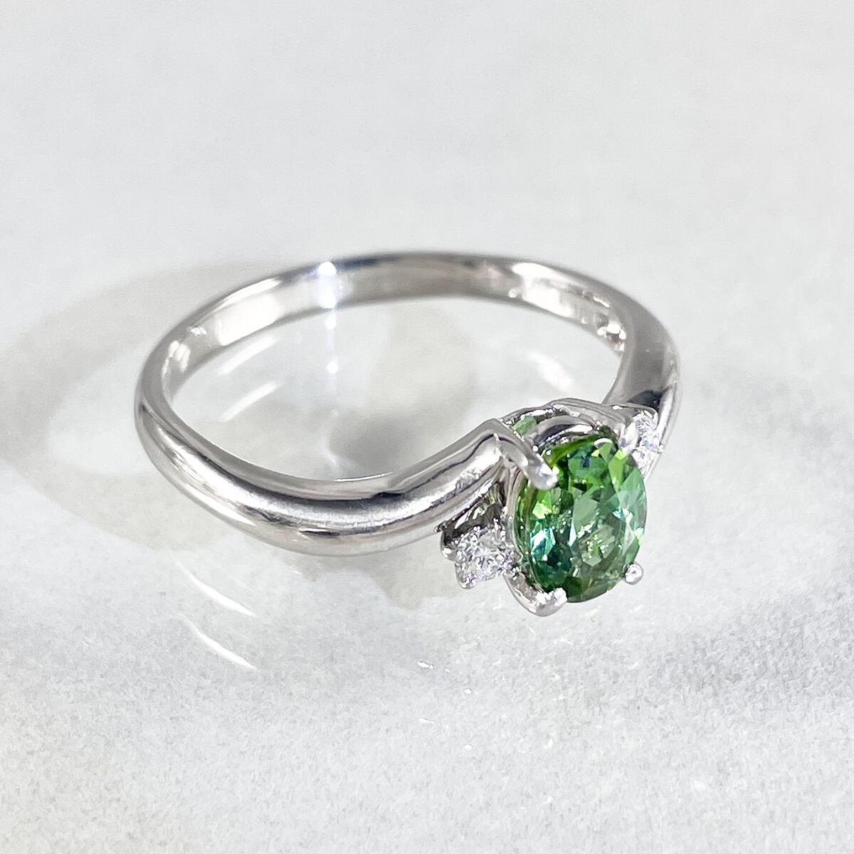 絶妙なカラーのグリーントルマリンがメインにセットされたリング。
