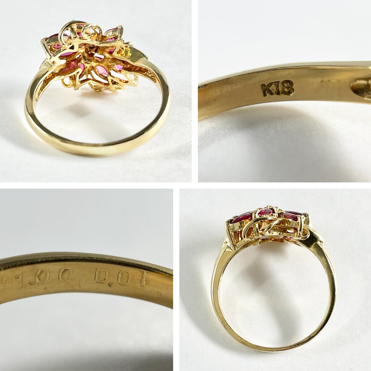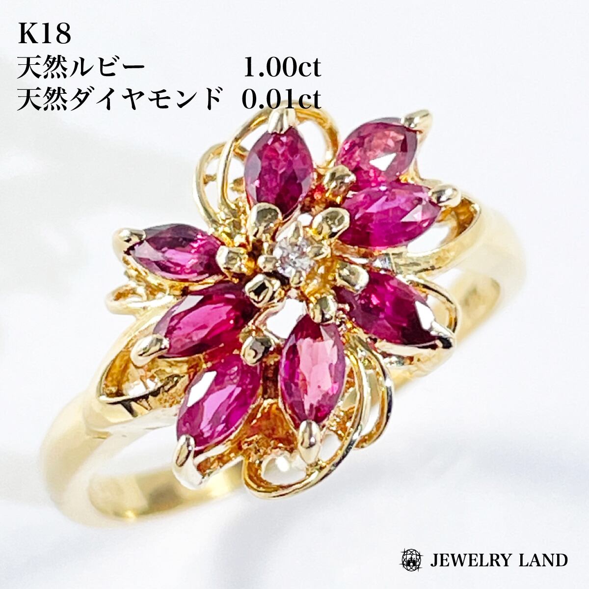 K18 天然ルビー 1.00ct 天然ダイヤモンド 0.01ct リング