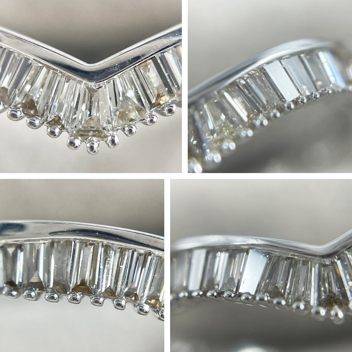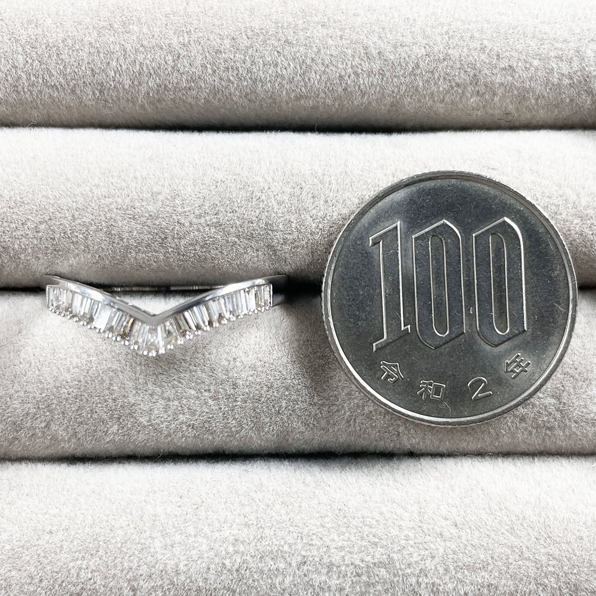 指をすっきりと見せてくれるV字シルエットのハーフエタニティリング。