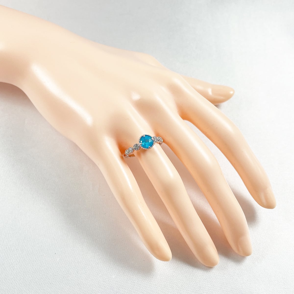 鮮やかなブルーカラーが手元で映えるアパタイトのリング。