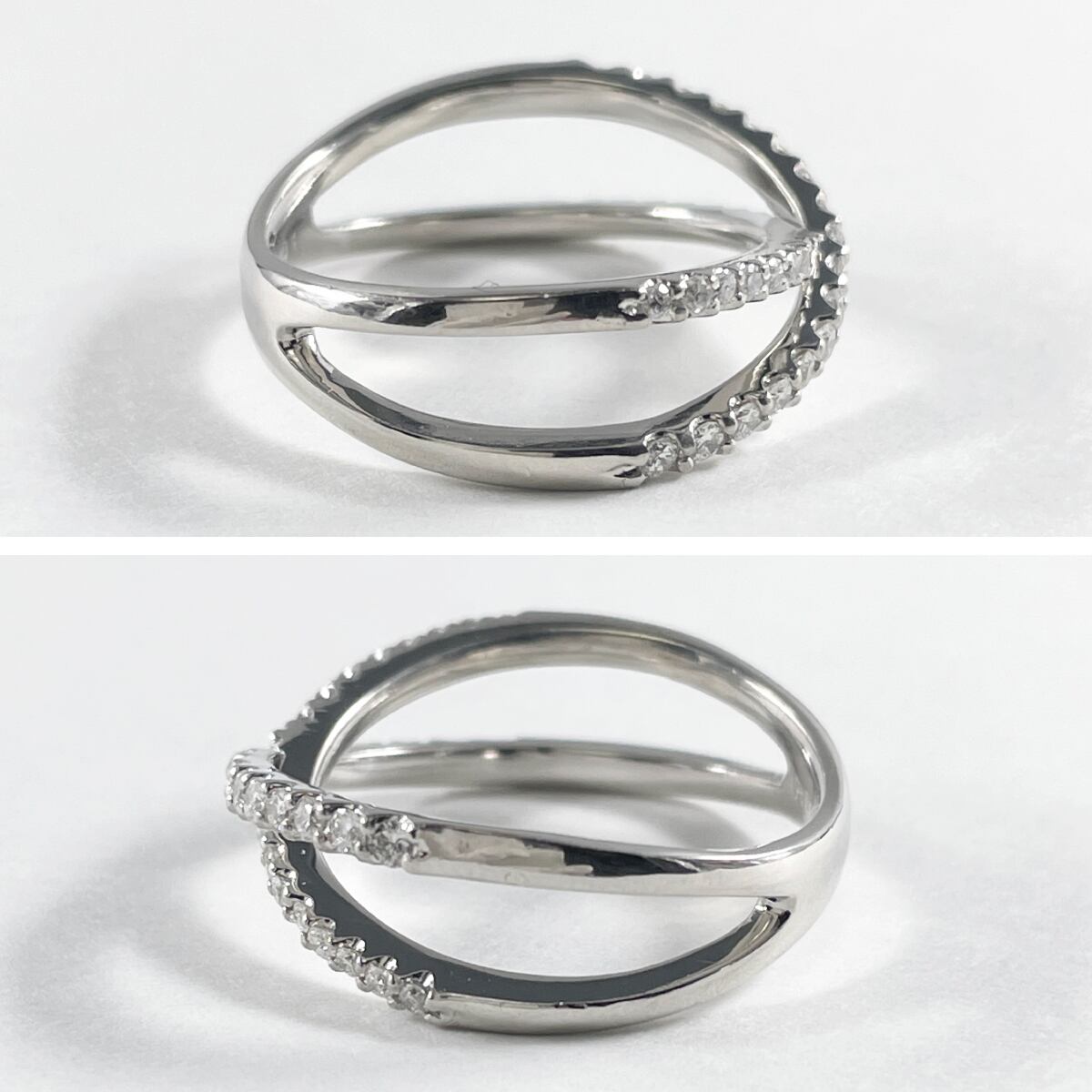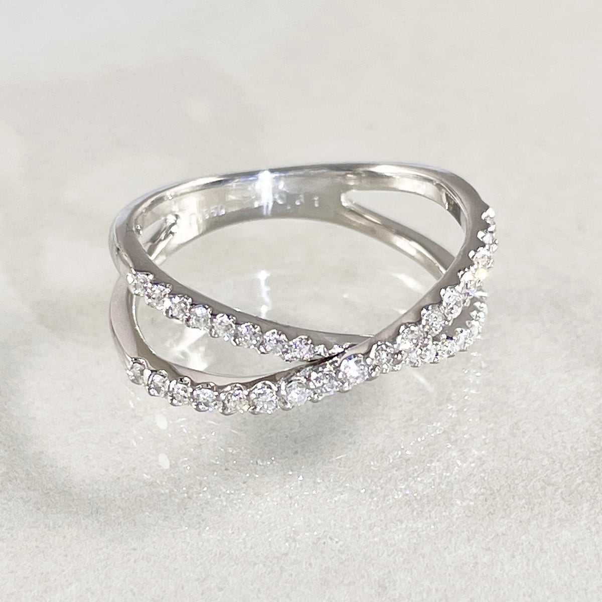 シンプルながら華やかで存在感のあるダイヤモンドのX字リング。