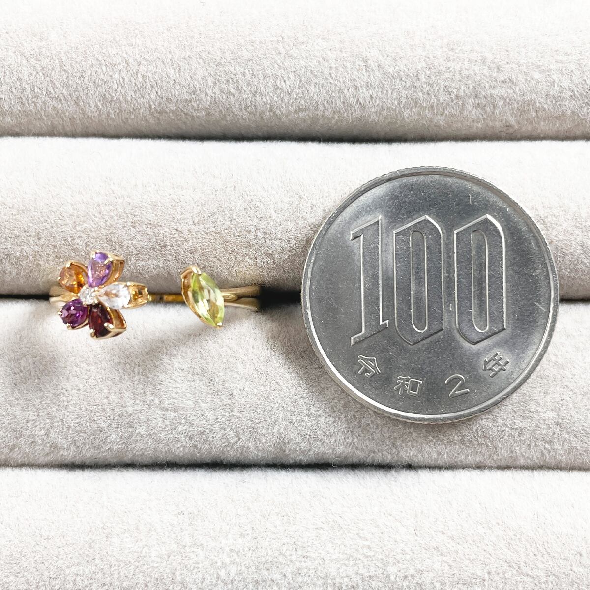 K18 マルチカラーストーン 計0.47ct ダイヤモンド 0.01ct リング