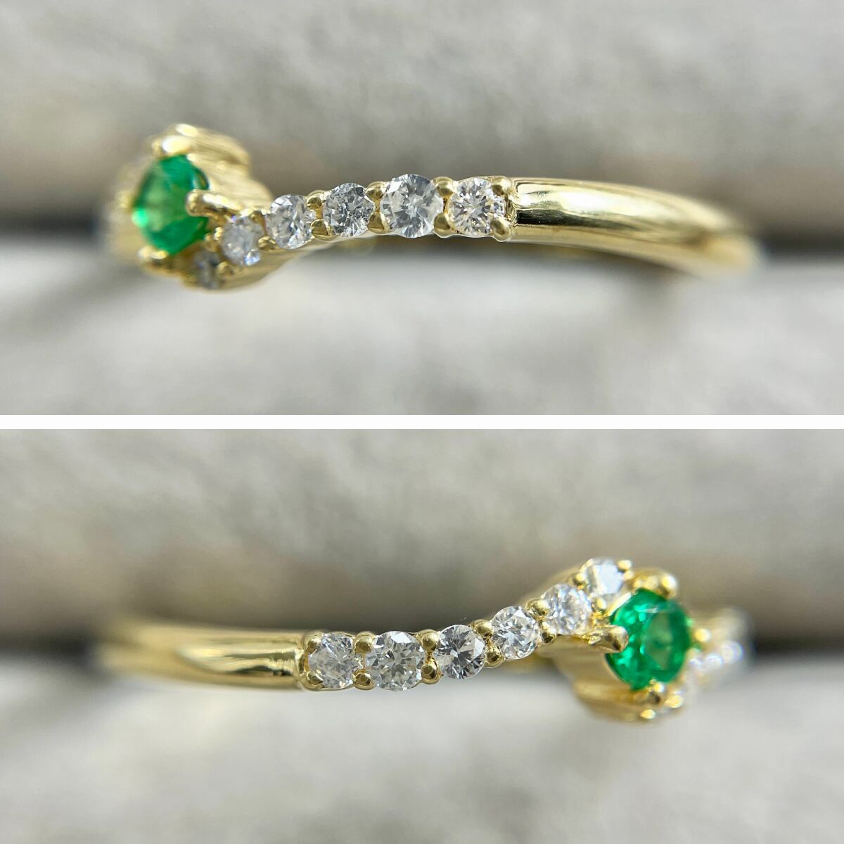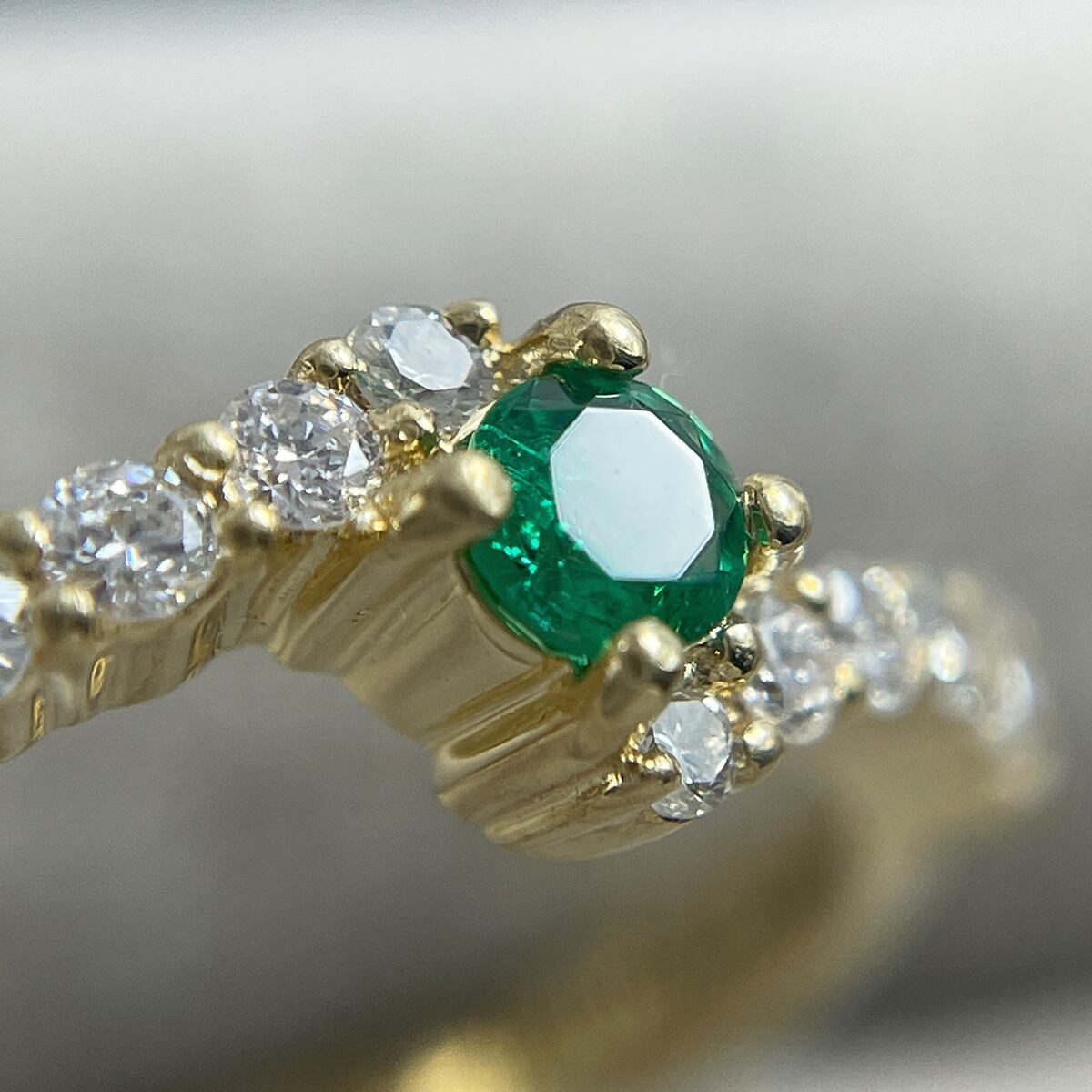 K18 天然エメラルド 0.13ct 天然ダイヤモンド 0.18ct リング